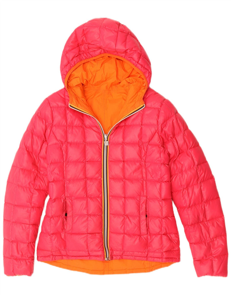 K-WAY Girls Hooded Reversible Padded Jacket 5-6 Years Pink Polyester