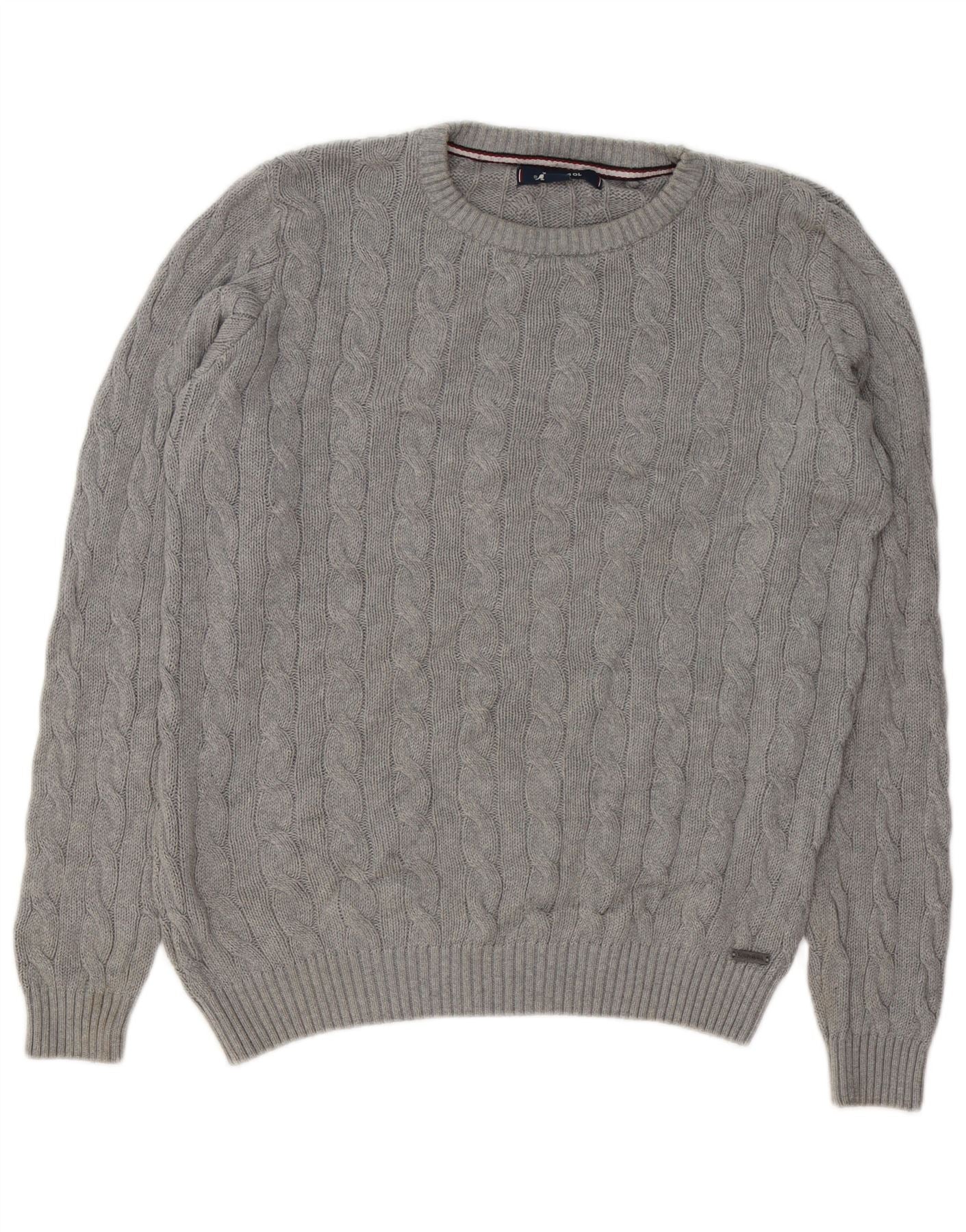 KANGOL Ανδρικό πουλόβερ με λαιμόκοψη μεγάλο γκρι βαμβακερό