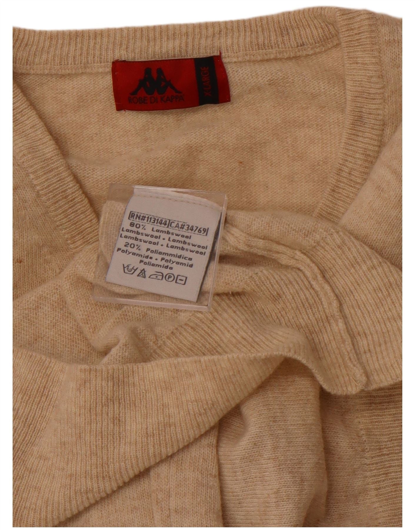 Ανδρικό πουλόβερ KAPPA με V λαιμόκοψη XL Μπεζ μαλλί αρνιού