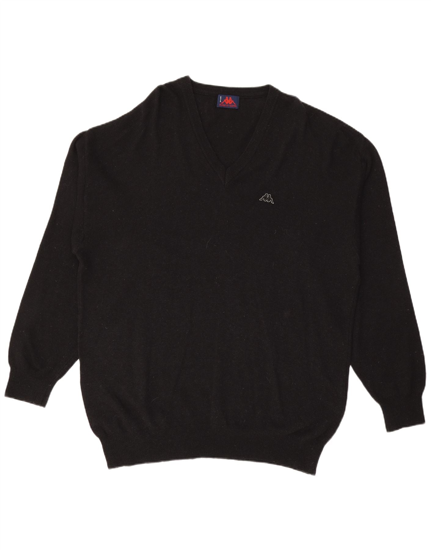 Ανδρικό πουλόβερ KAPPA με V λαιμόκοψη XL Μαύρο μάλλινο