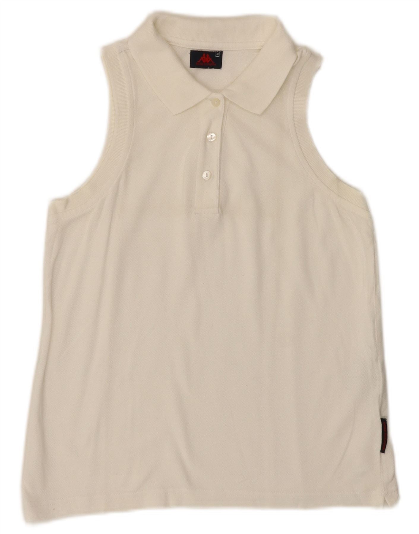 KAPPA Γυναικείο αμάνικο μπλουζάκι πόλο UK 12 μεσαίο λευκό βαμβακερό