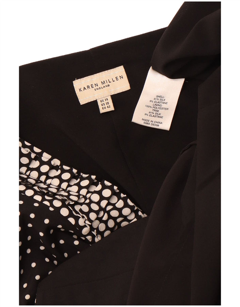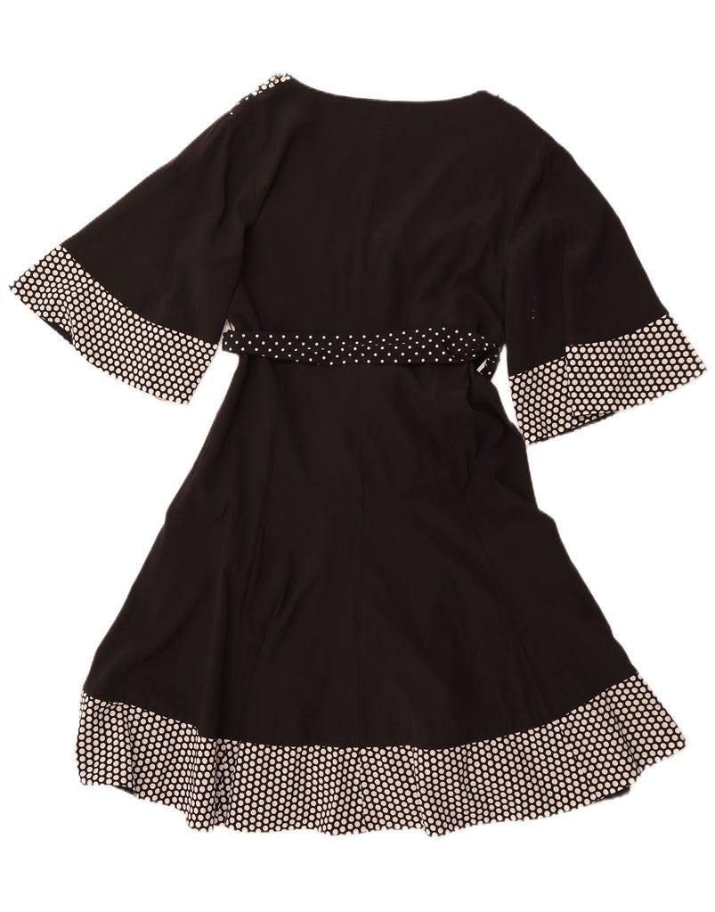 KAREN MILLEN Womens 3/4 Sleeve A-Line Dress UK 14 Large Black Polka Dot