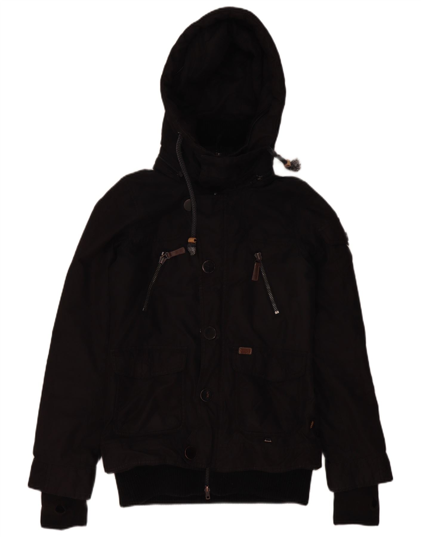 KHUJO Mens Hooded Utility Jacket UK 38 Medium Black Polyester