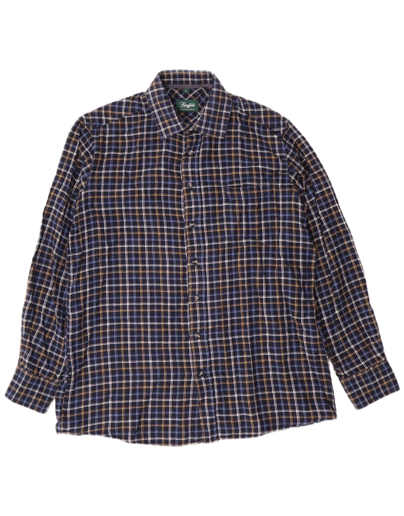 KINGFIELD Ανδρικό φανελένιο πουκάμισο μεγάλο μπλε ναυτικό, βαμβακερό