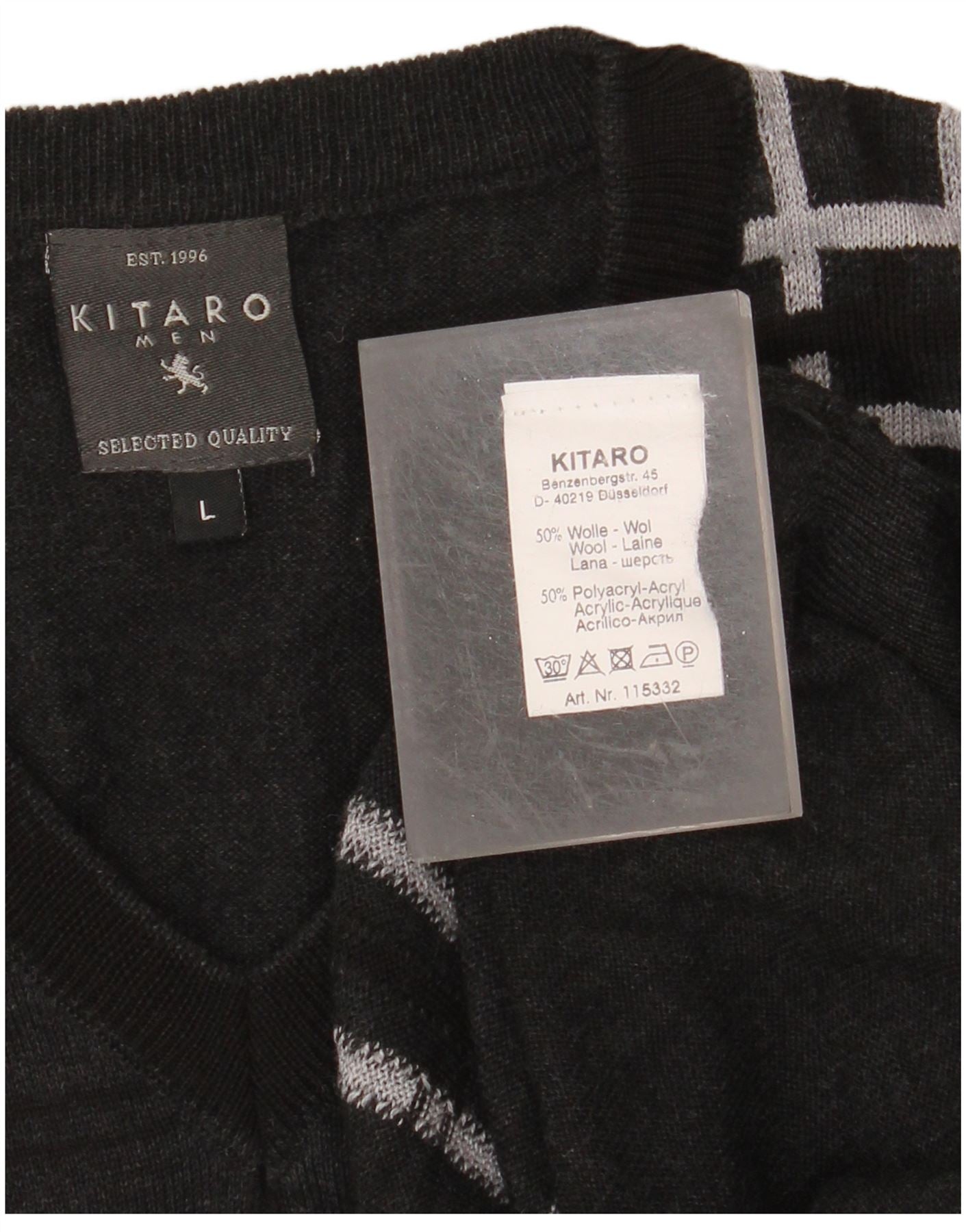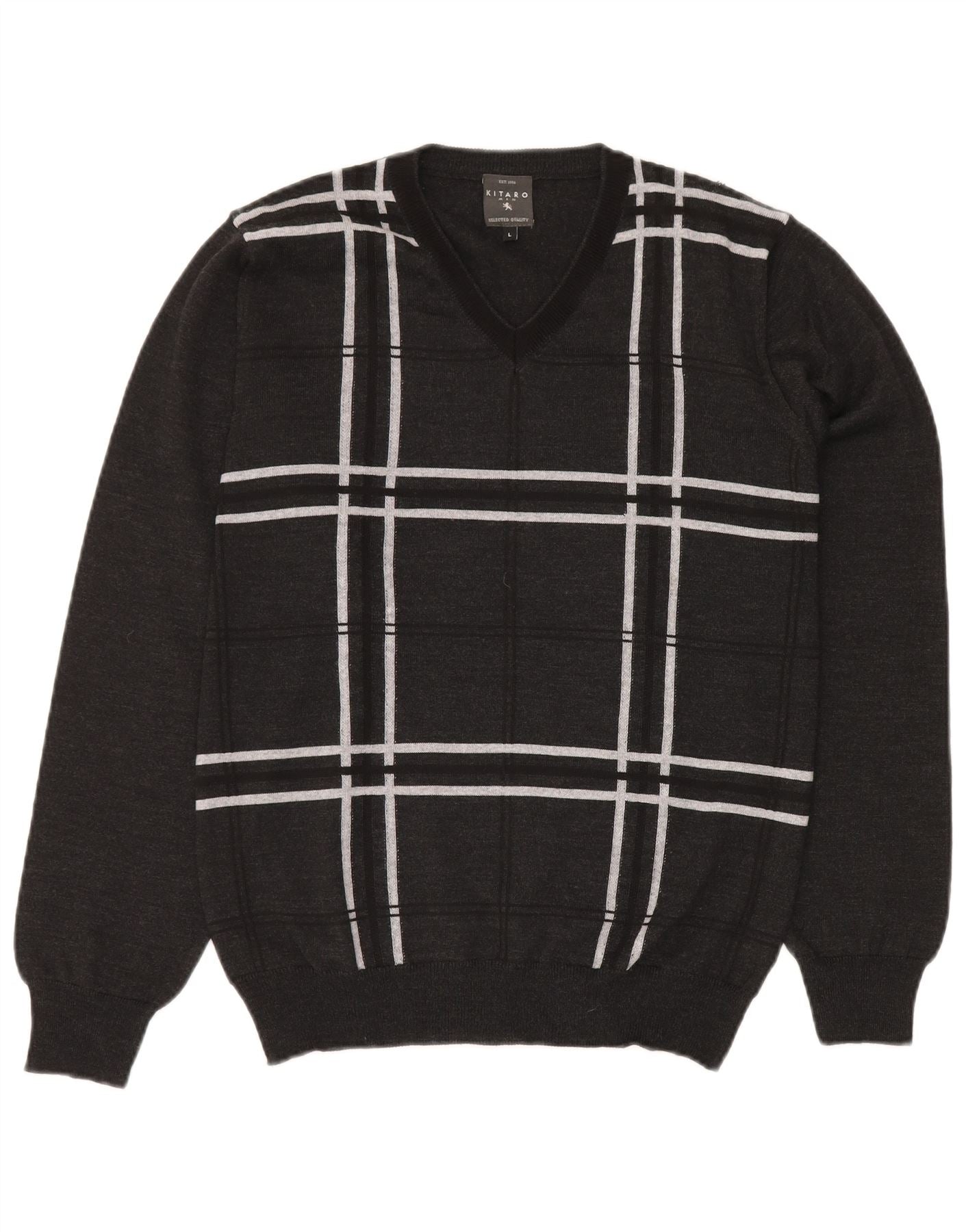 KITARO Ανδρικό πουλόβερ με λαιμόκοψη με λαιμόκοψη μεγάλο γκρι μαλλί