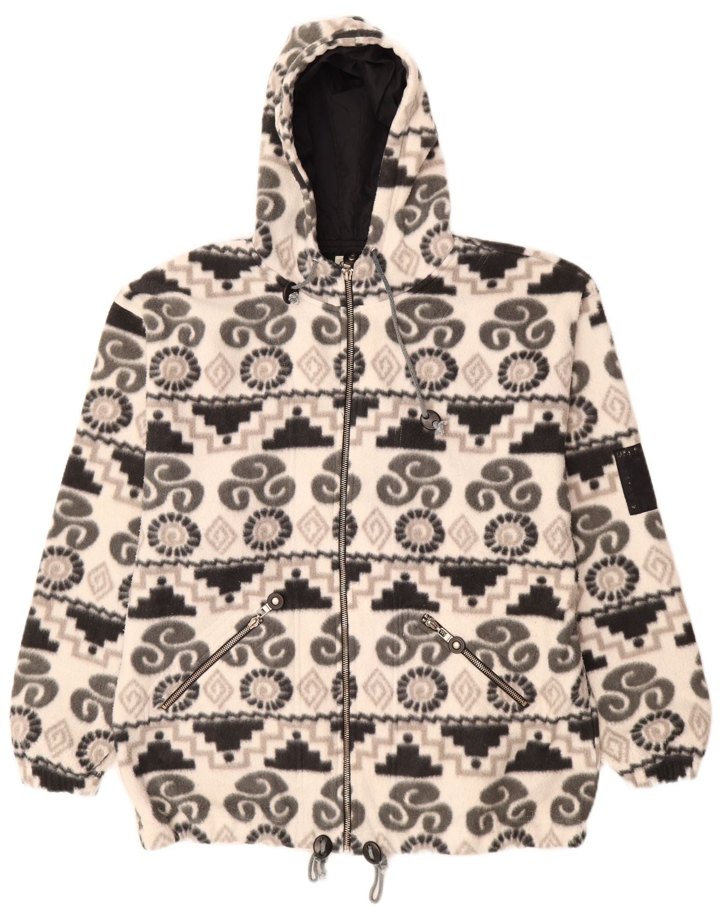 KNOCK OUT Γυναικείο Fleece Jacket με κουκούλα UK 14 Medium White Geometric