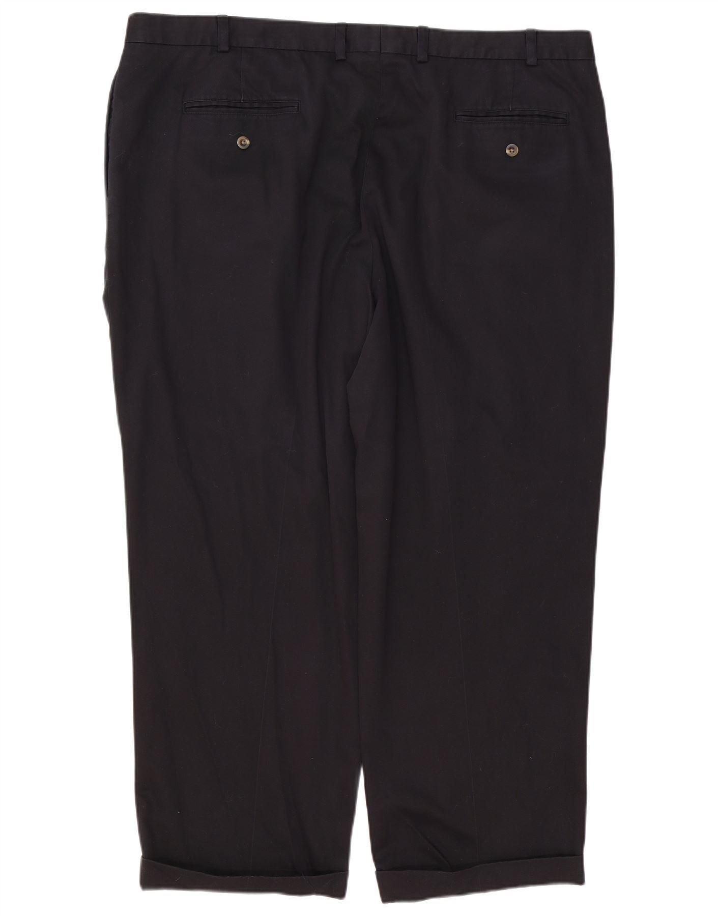 - AI Description: These L.L.Bean men's Chino Trousers are crafted from 100 percent cotton, offering a comfortable feel. They feature a classic straight leg and a regular fit for timeless style. The button and zip closure ensures a secure fit. Practical pockets add functionality. The plain black design provides versatile wear. The fabric offers a subtle stretch for ease of movement, perfect for everyday comfort.
