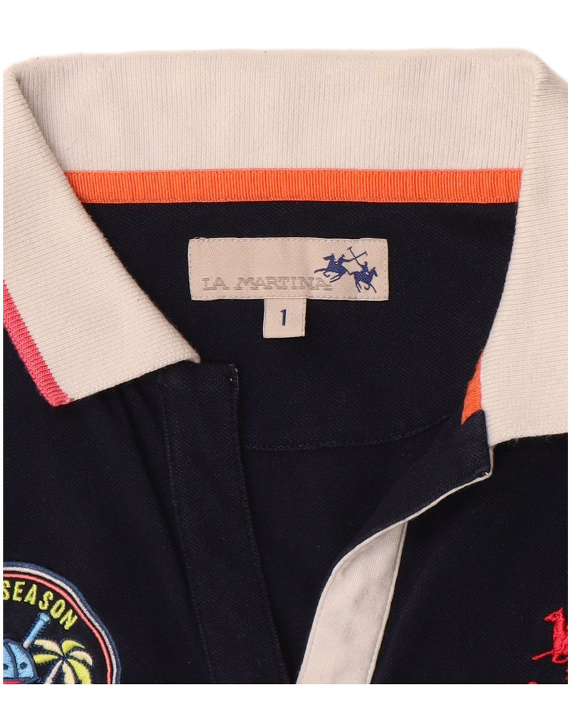 LA MARTINA Womens Miami Graphic Rugby Polo Shirt Size 1 XS Navy Blue