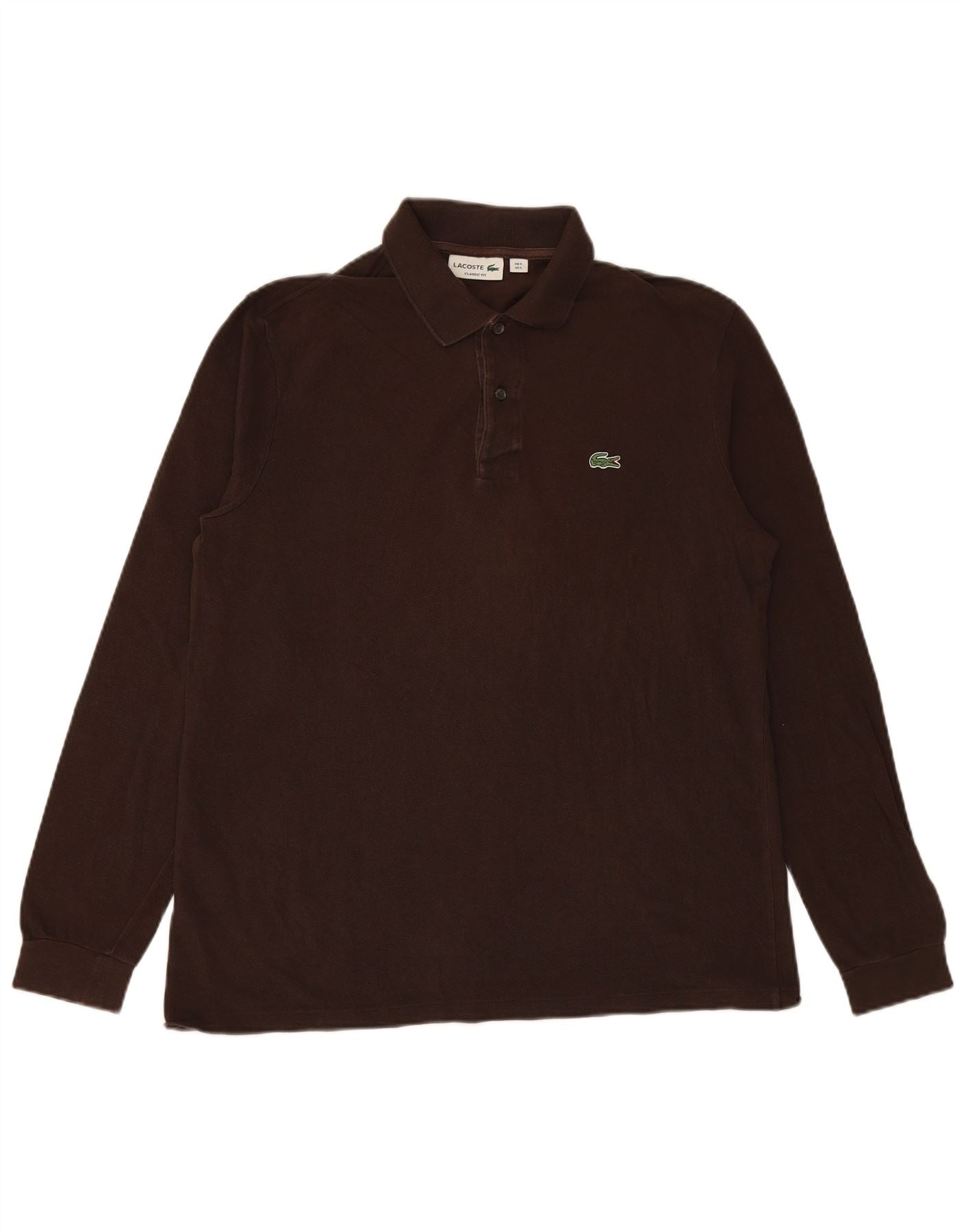 LACOSTE Mens Classic Fit Long Sleeve Polo Shirt Size 5 Large Brown Cotton