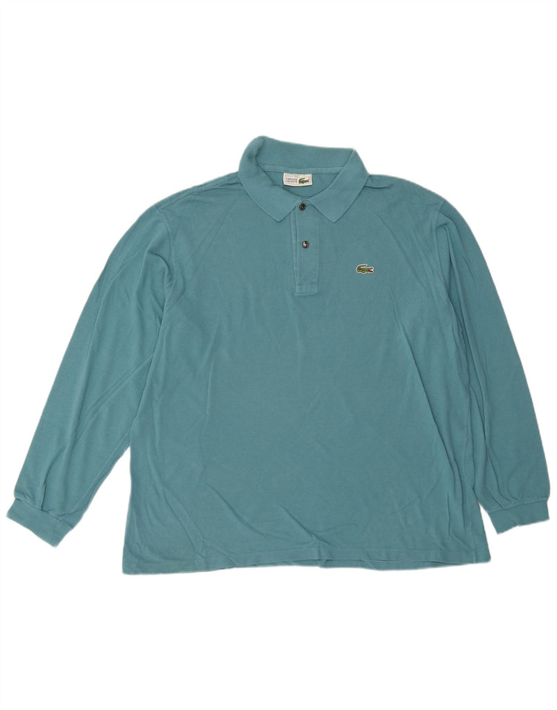 LACOSTE Mens Long Sleeve Polo Shirt Size 7 2XL Blue Cotton