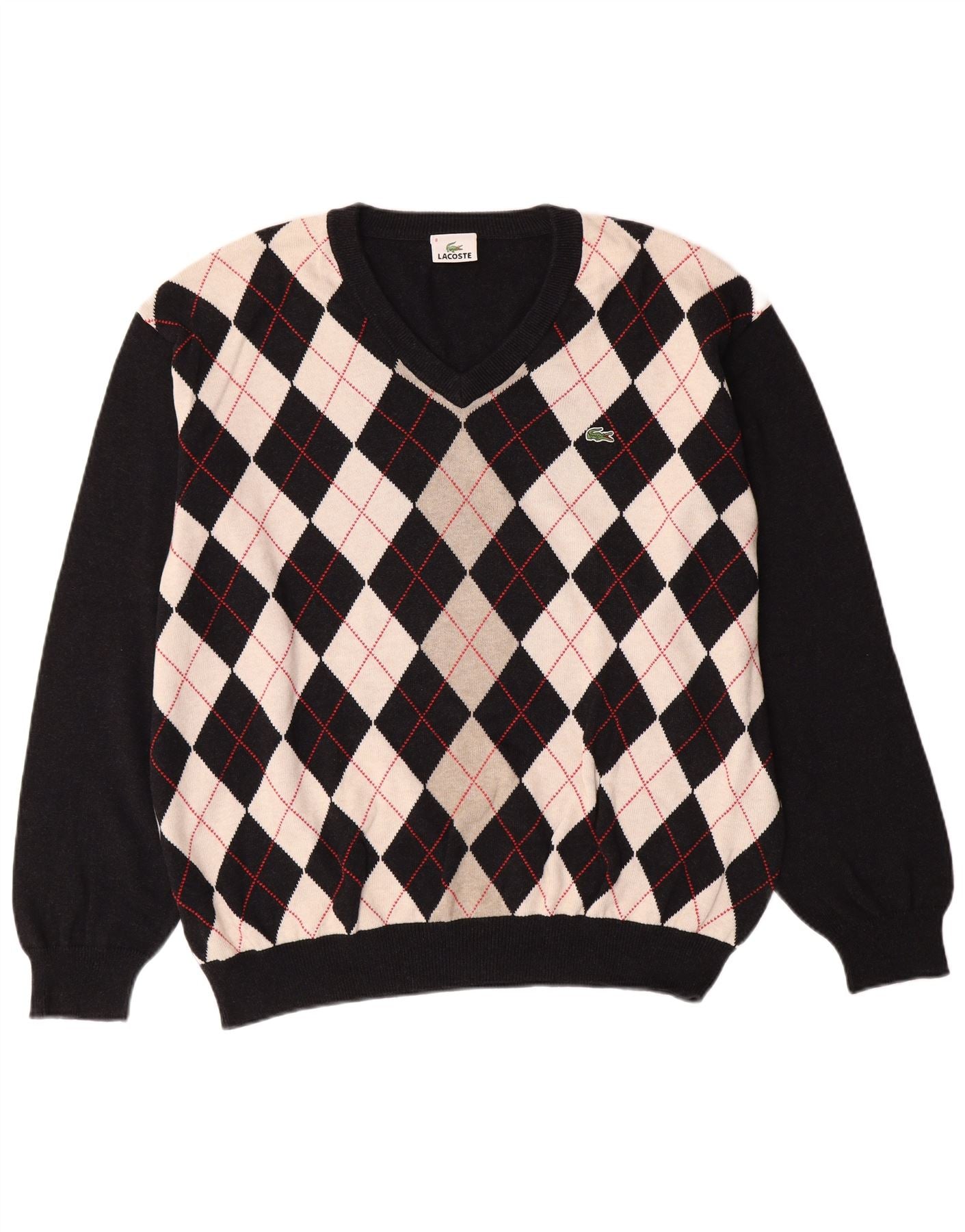 Ανδρικό πουλόβερ με λαιμόκοψη LACOSTE, μέγεθος 8 3XL Μαύρο Argyle/Διαμαντένιο Βαμβάκι