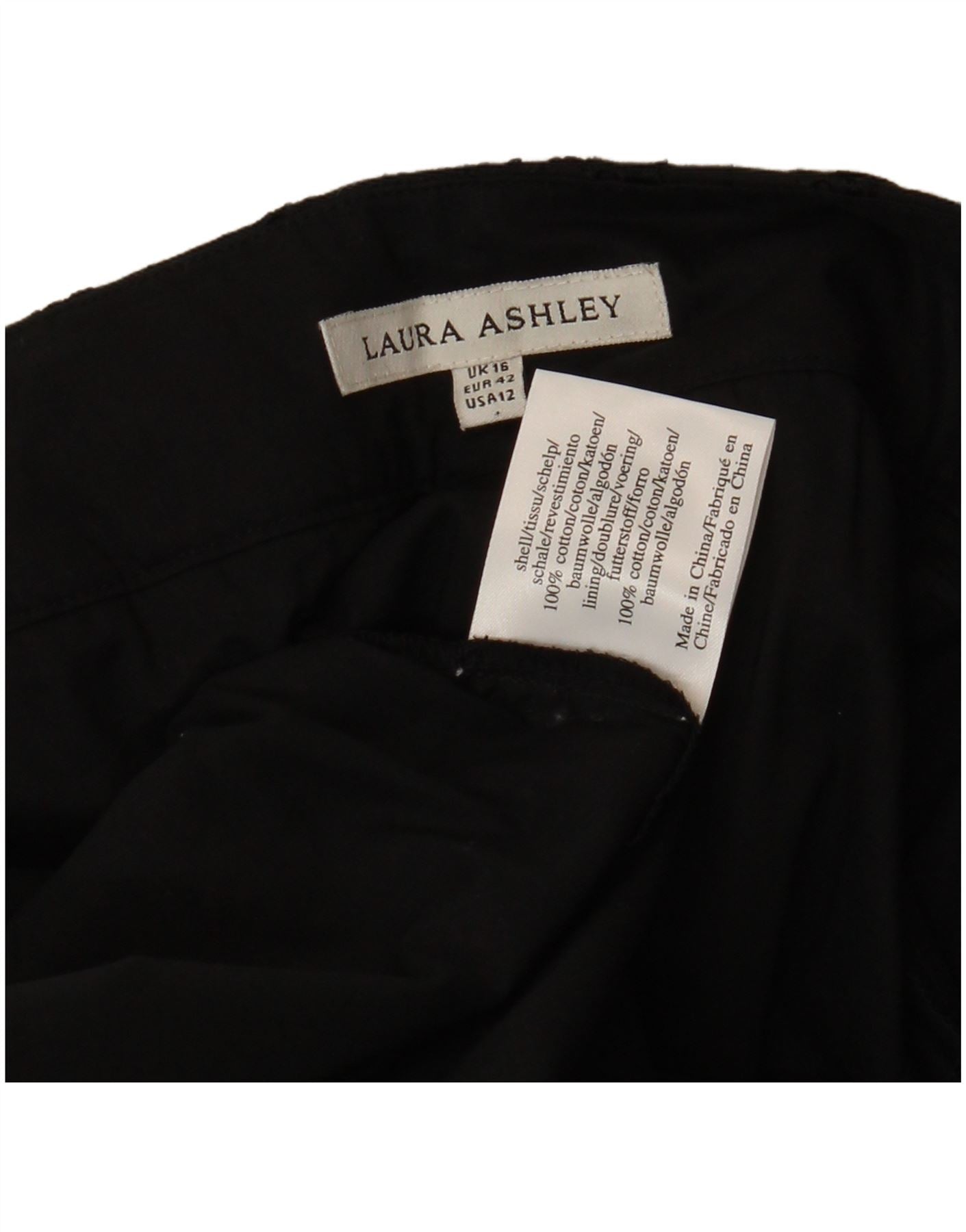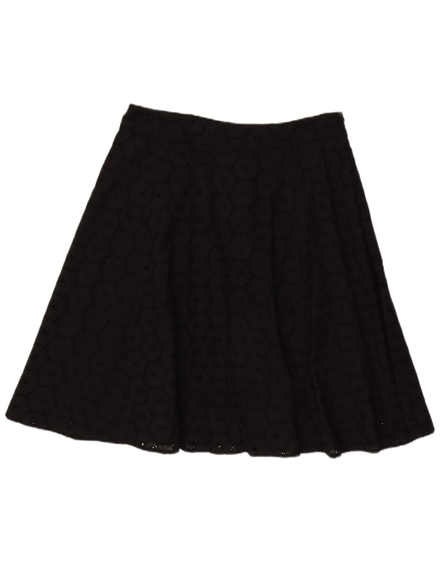 LAURA ASHLEY Womens A-Line Skirt UK 16 Large W34 Black Floral Cotton