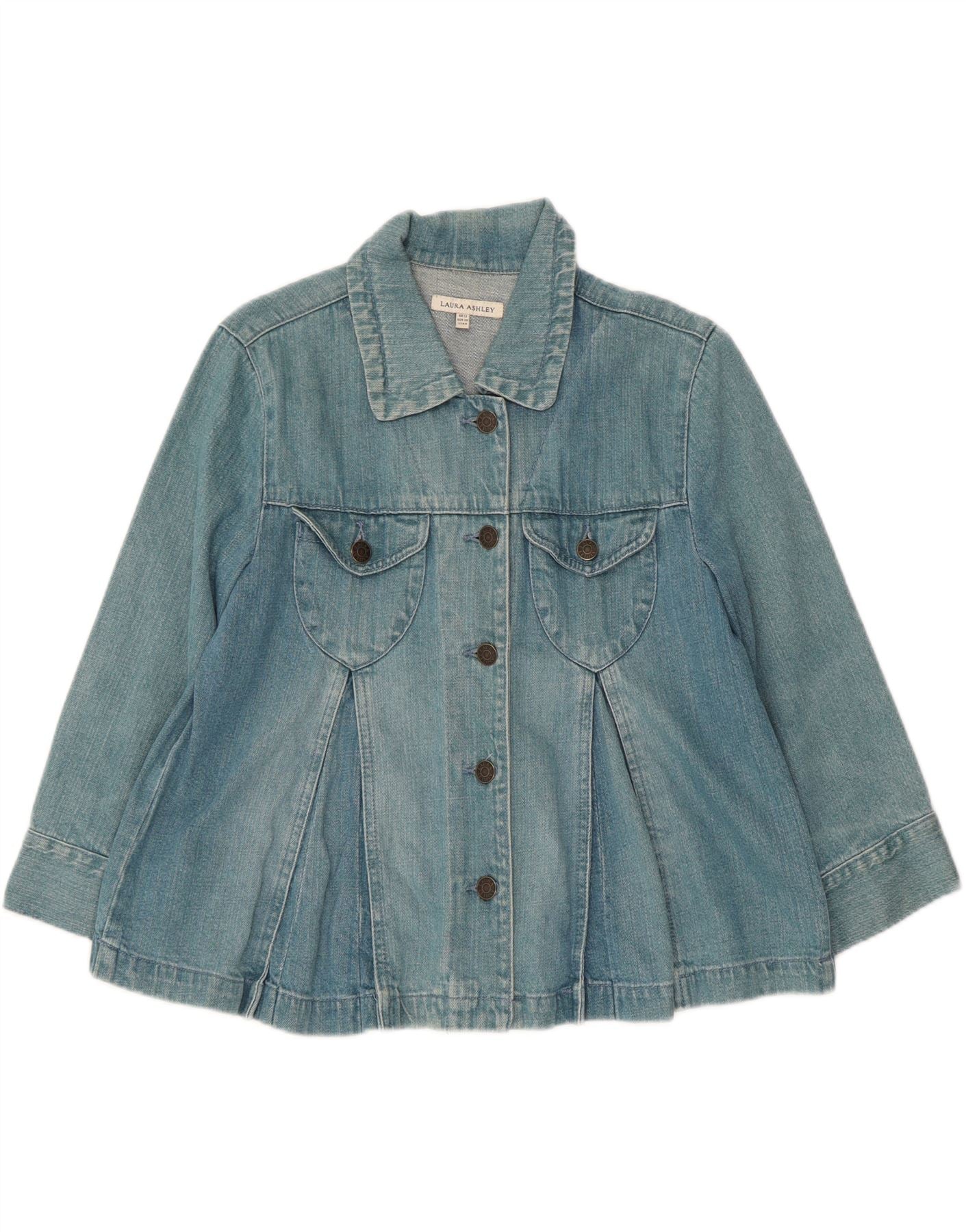 LAURA ASHLEY Womens Crop 3/4 Sleeve Denim Jacket UK 12 Medium Blue Cotton
