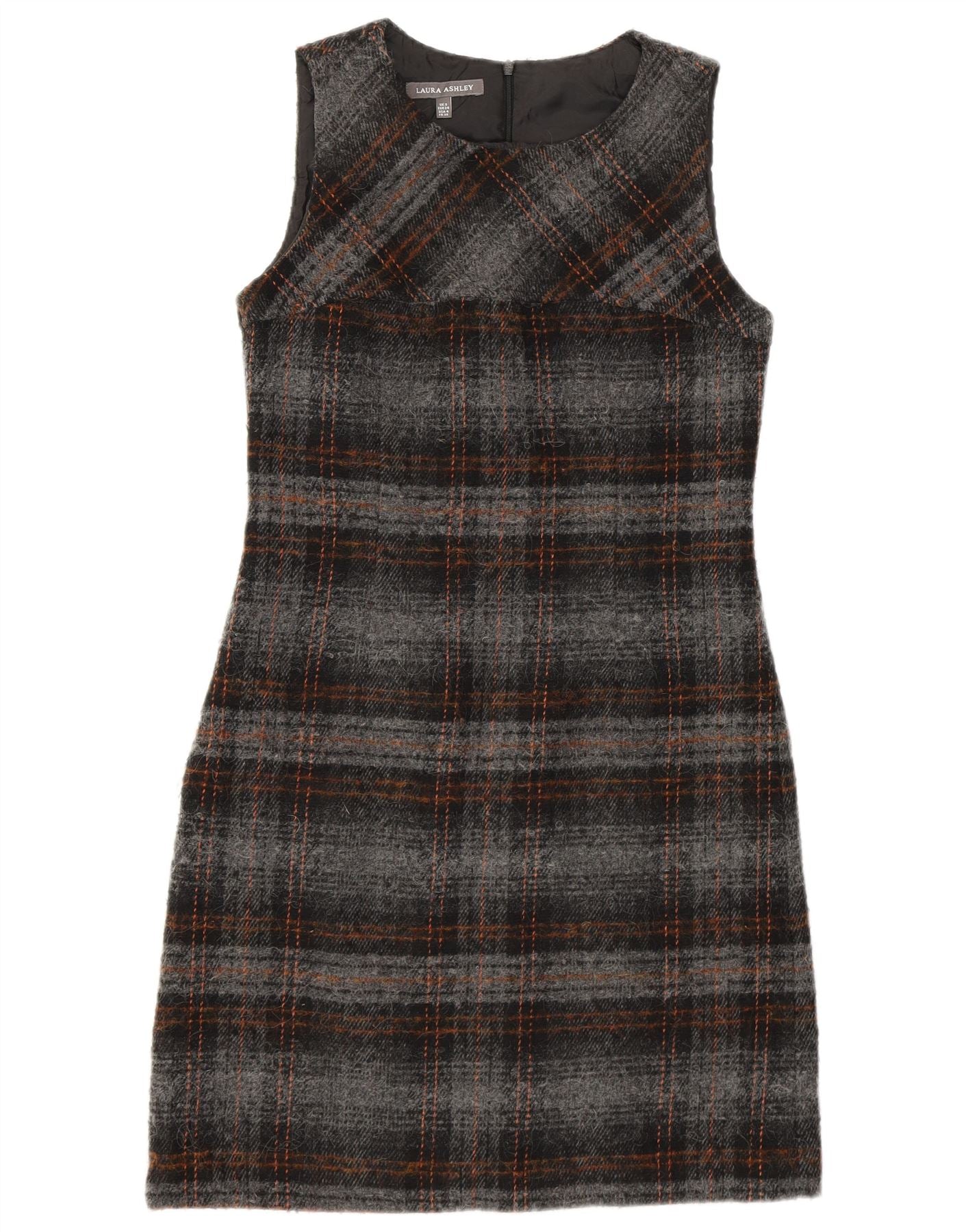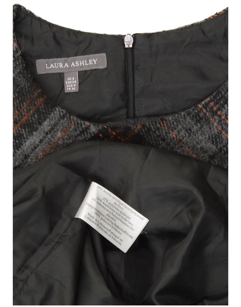 LAURA ASHLEY Womens Sleeveless Sheath Dress UK 8 Small Grey Check Acrylic