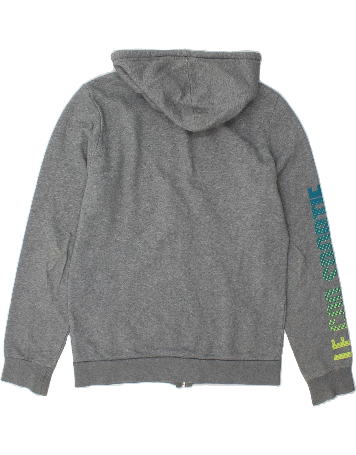 LE COQ SPORTIF Mens Graphic Zip Hoodie Sweater Small Grey Cotton