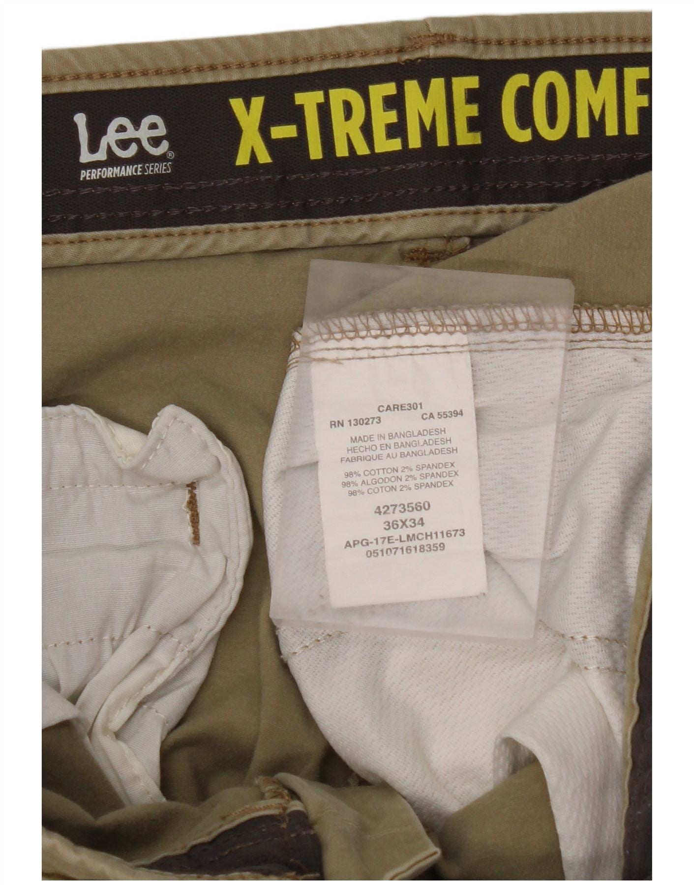 LEE Ανδρικό X-treme Comfort ίσιο παντελόνι Chino W36 L34 Μπεζ βαμβακερό