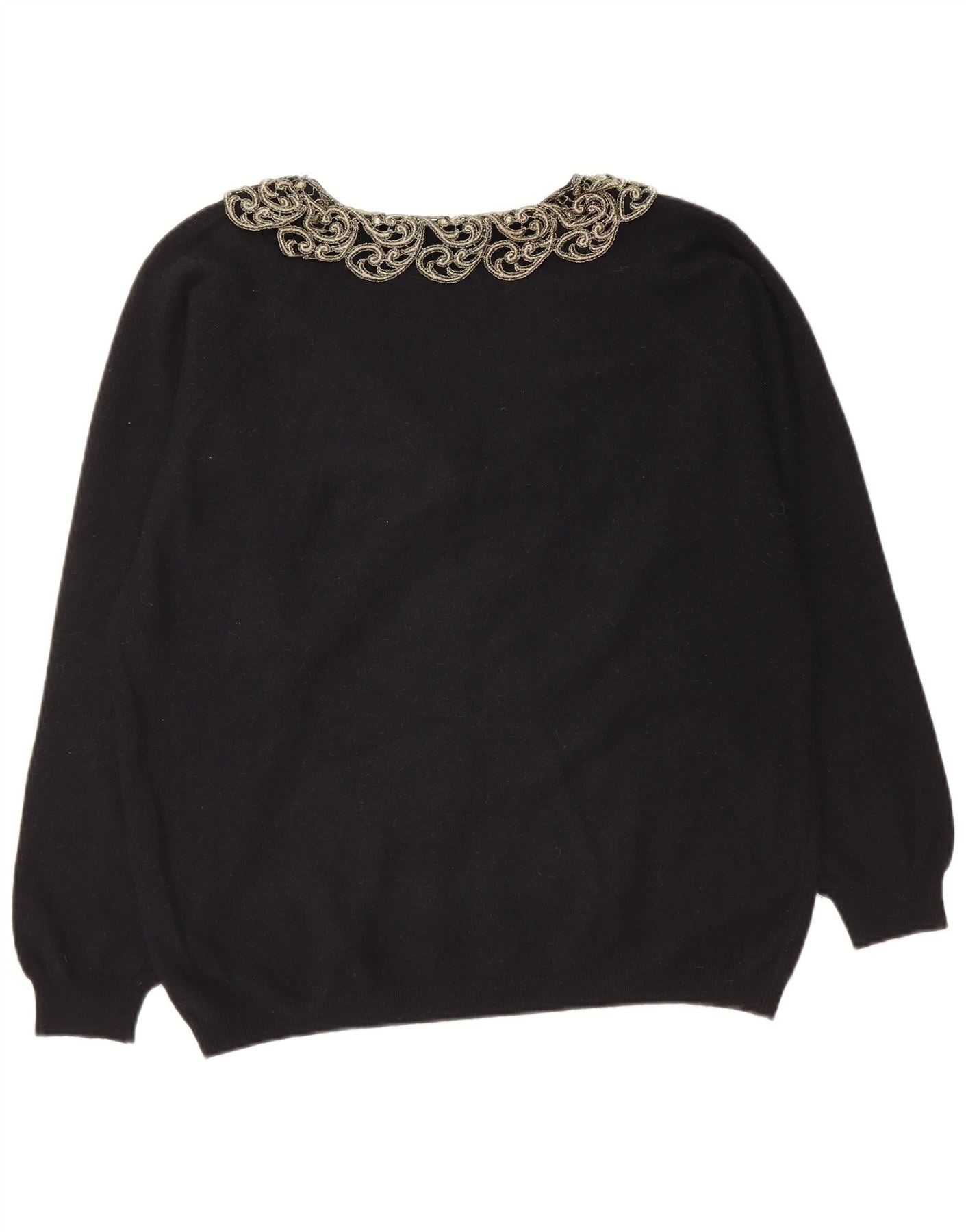 LETIZIA L. Γυναικείο πουλόβερ με λαιμόκοψη UK 16 μεγάλο μαύρο Paisley Wool