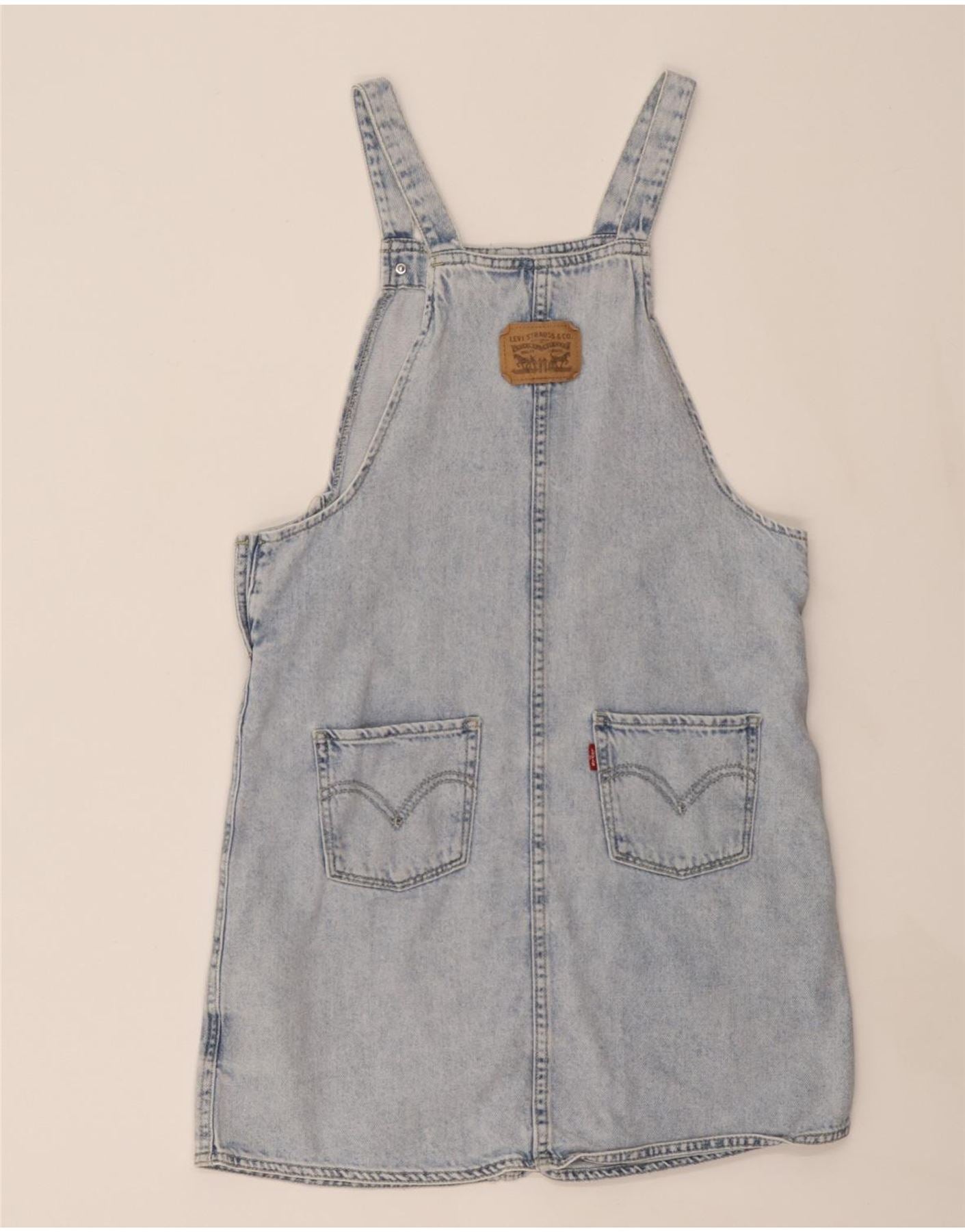 BENETTON Girls Drop Waist Dress 8-9 Years Large Blue Striped Cotton
