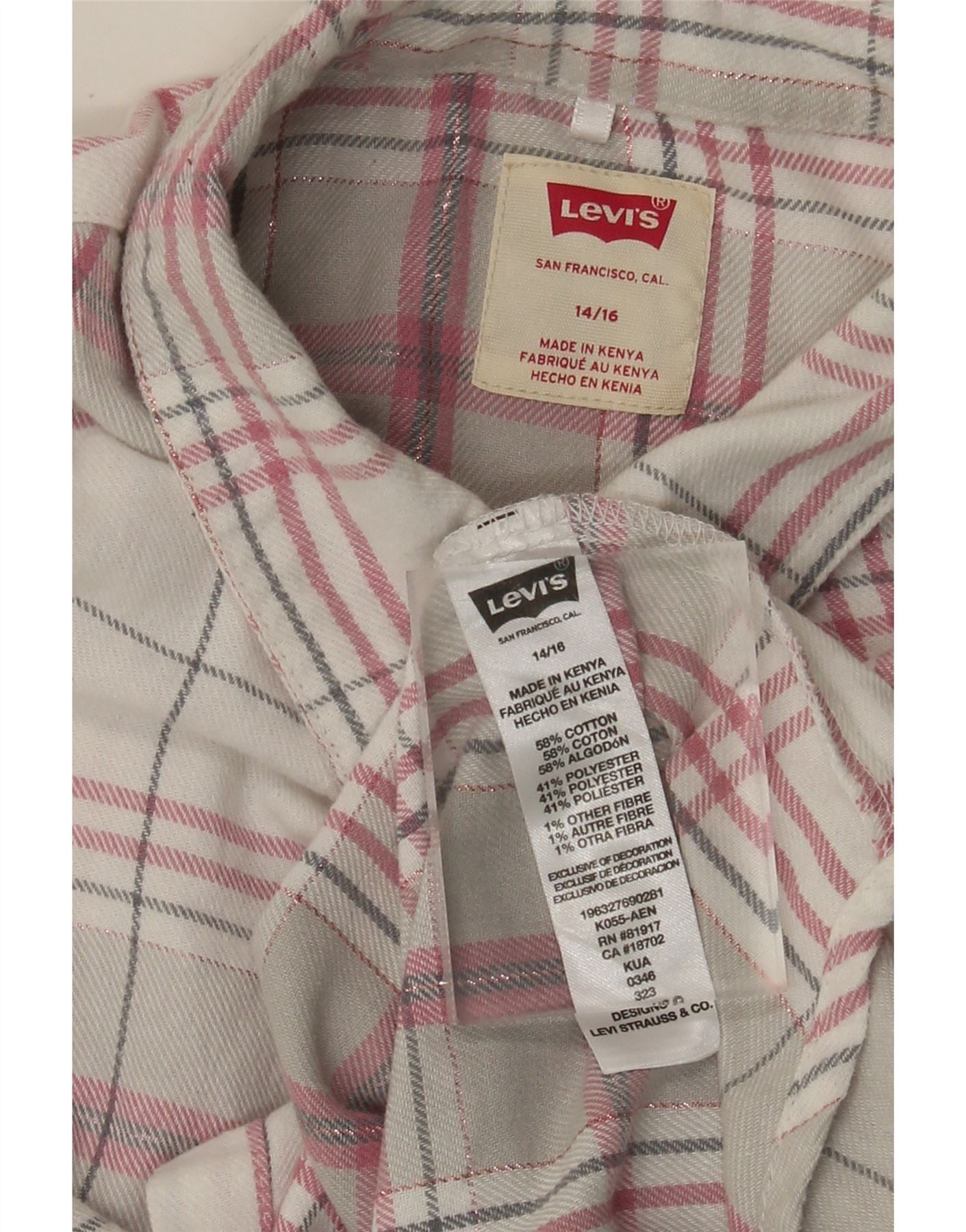 LEVI'S Girls Flannel πουκάμισο 14-15 ετών Γκρι βαμβακερό
