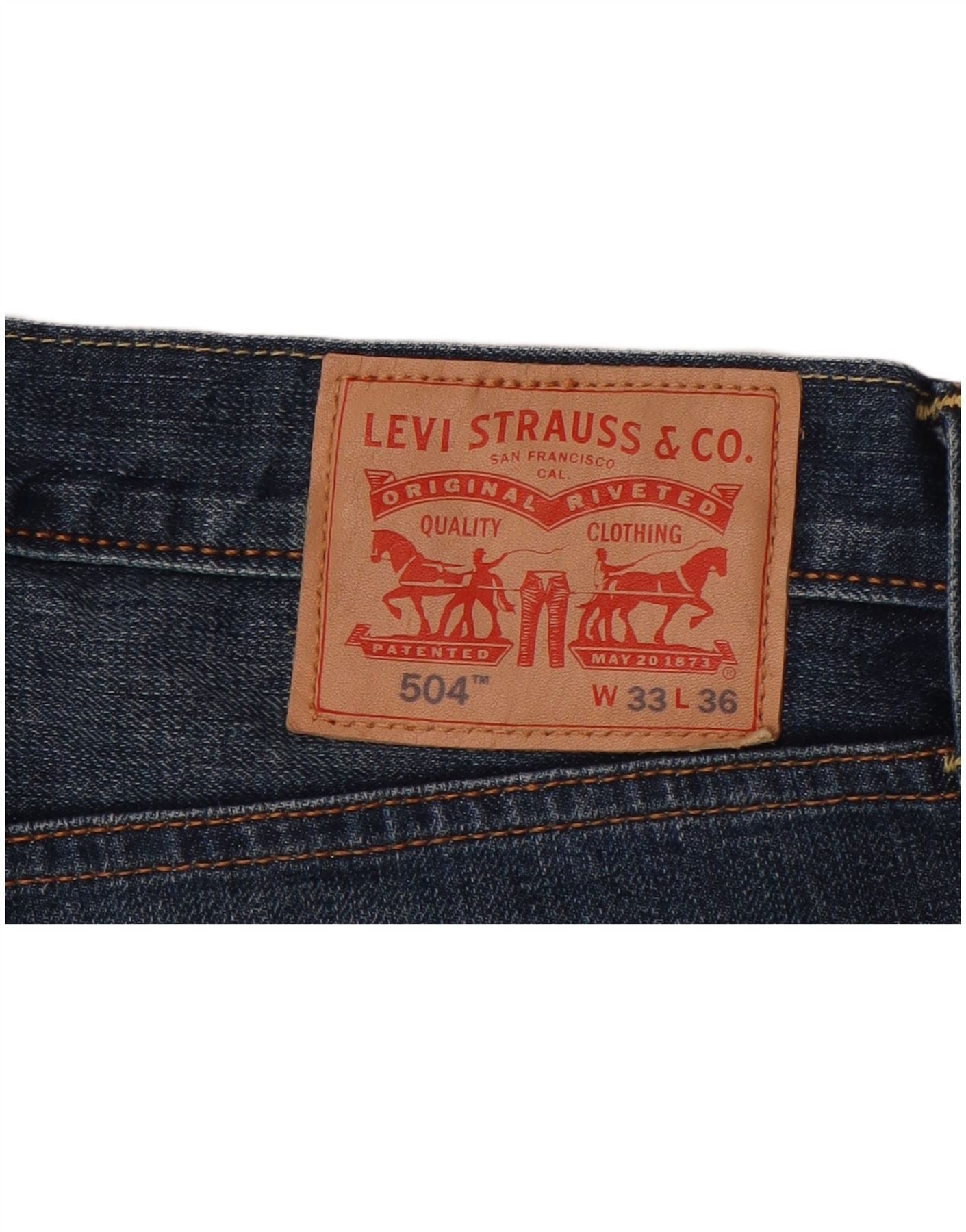 - AI Description: This Levi's men's 504 Straight Jeans are crafted from classic blue denim. They feature a straight fit through the leg for a timeless silhouette. A button closure secures the front. Practical pockets offer everyday utility. The regular fit ensures comfort and versatility. This classic style provides a foundational piece for any wardrobe.