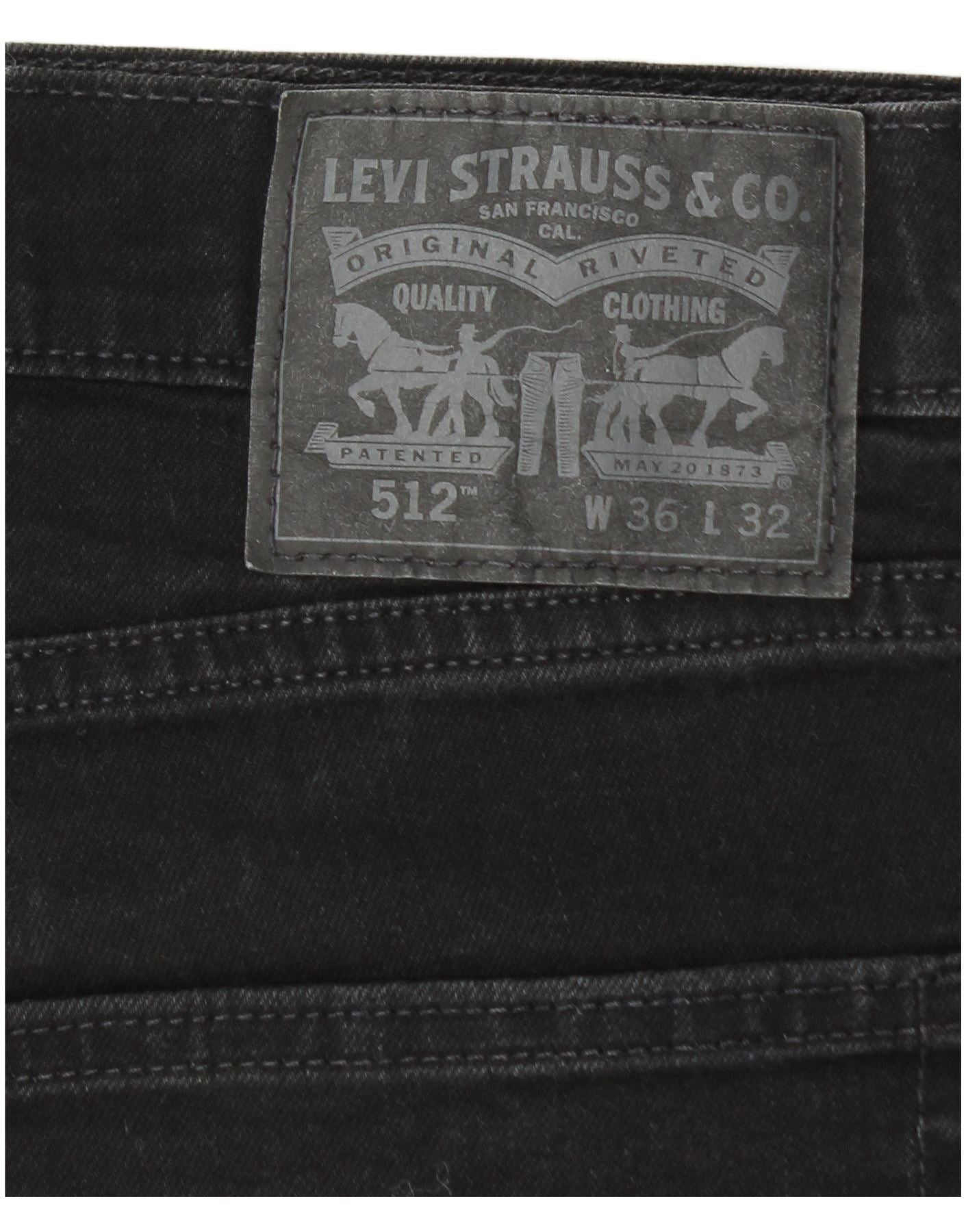 LEVI'S Mens 512 Slim Jeans W36 L32 Black Cotton