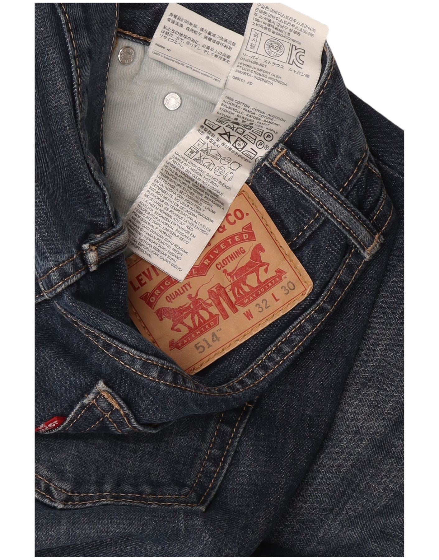 Levi's Mens 514 Straight Jeans W32 L30 Navy Blue Cotton