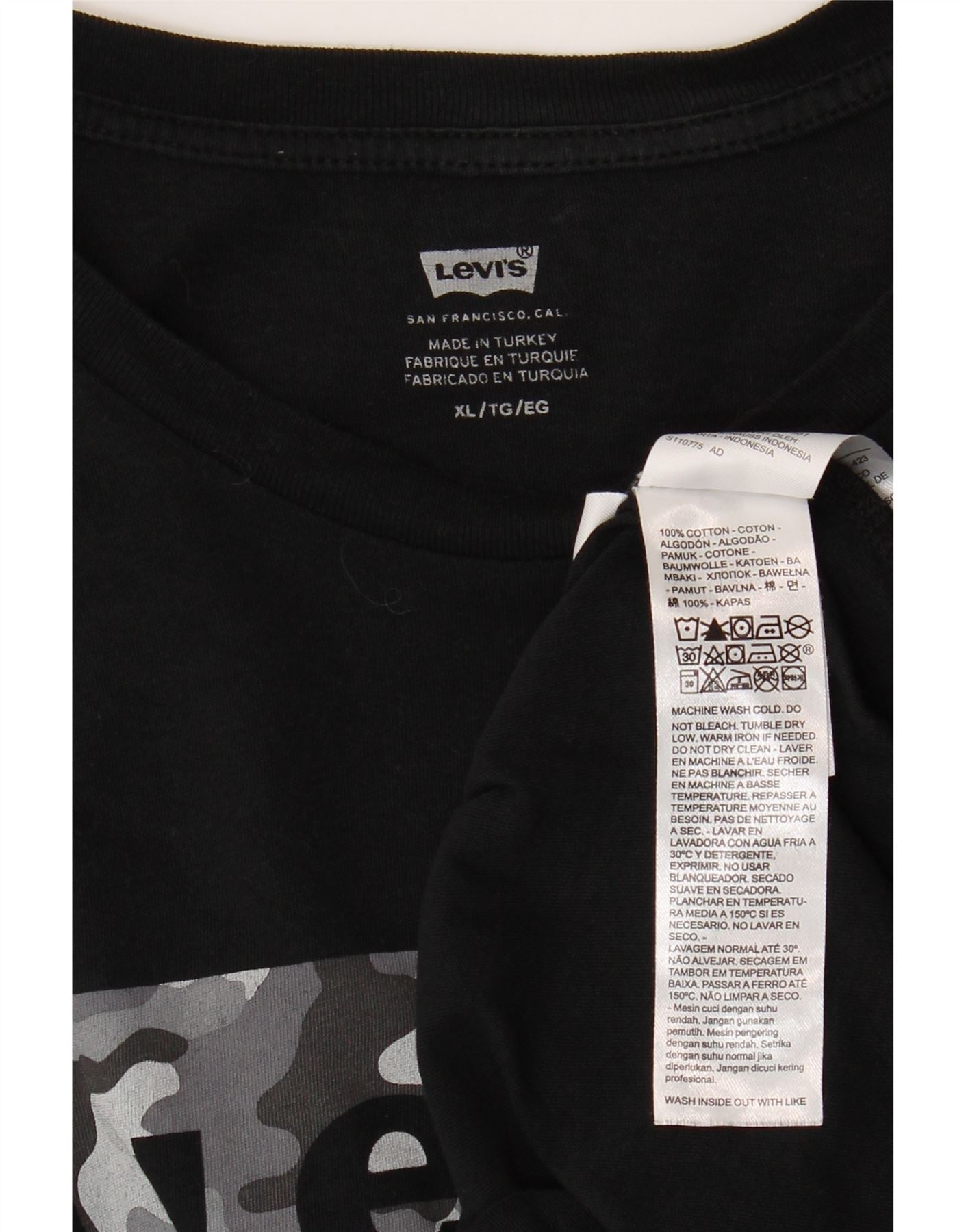 Ανδρικό γραφικό T-Shirt LEVI'S Top XL Μαύρο βαμβακερό