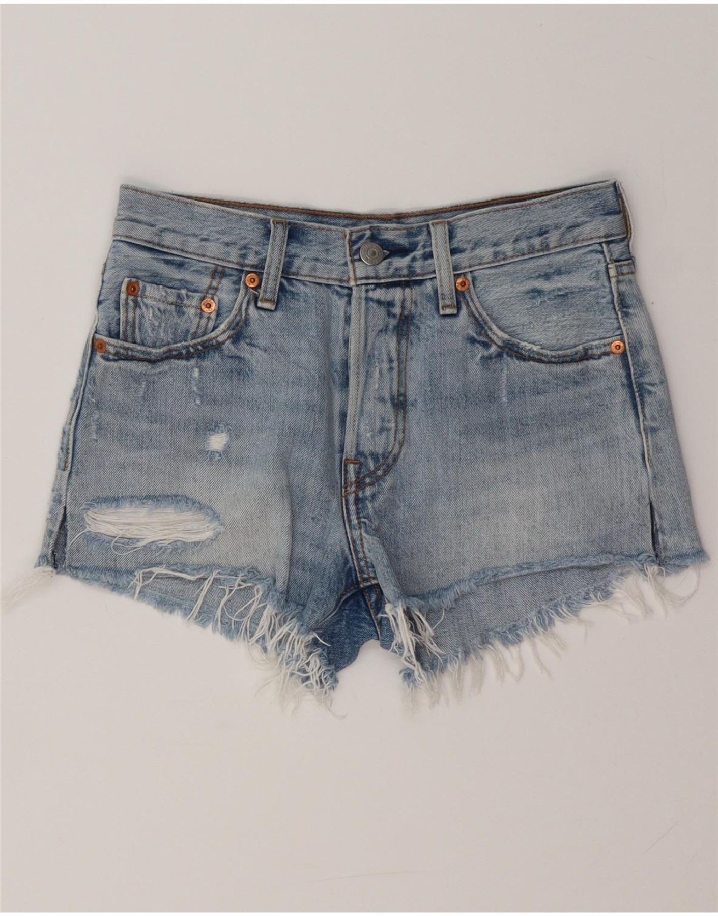 LEVI'S Womens 501 Distressed τζιν σορτς W24 XS Μπλε βαμβακερό