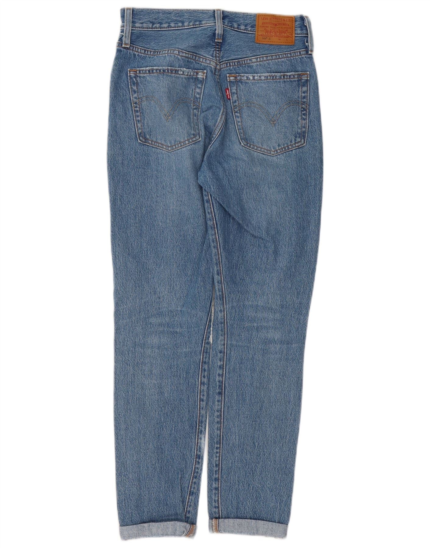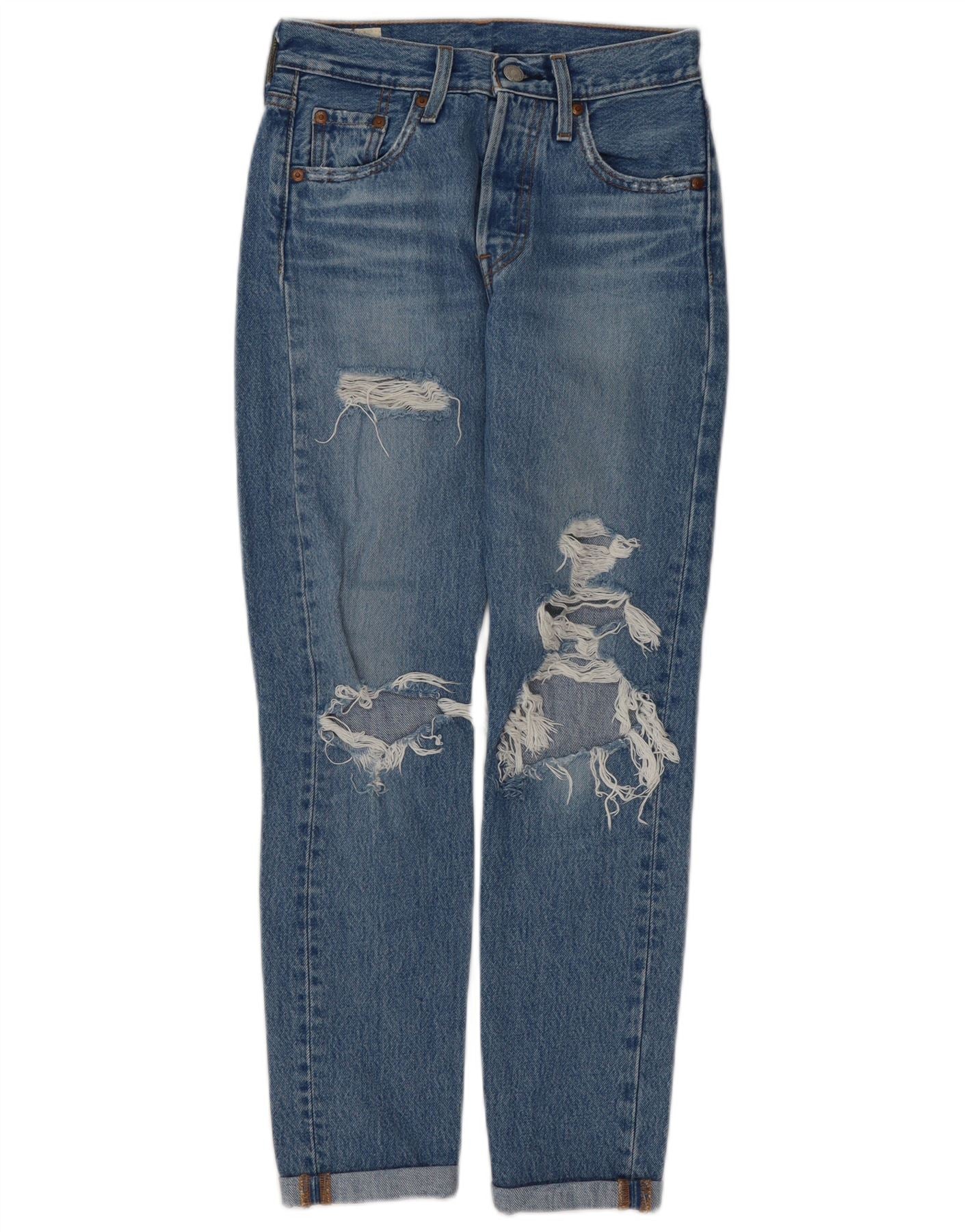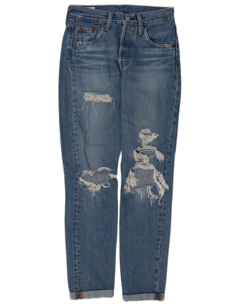 LEVI'S Womens 501 Distressed Straight Jeans W23 L28 Blue Cotton