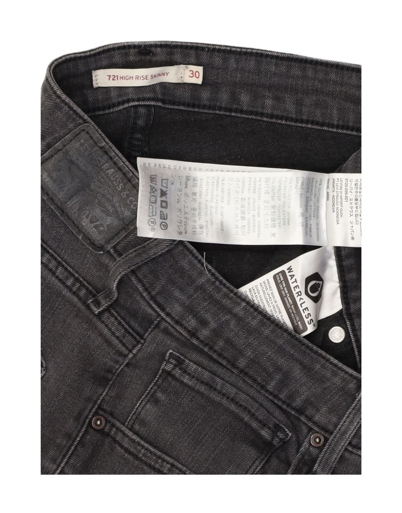 LEVI'S Γυναικείο 711 Ψηλό Skinny Jeans W30 L30 Γκρι βαμβακερό