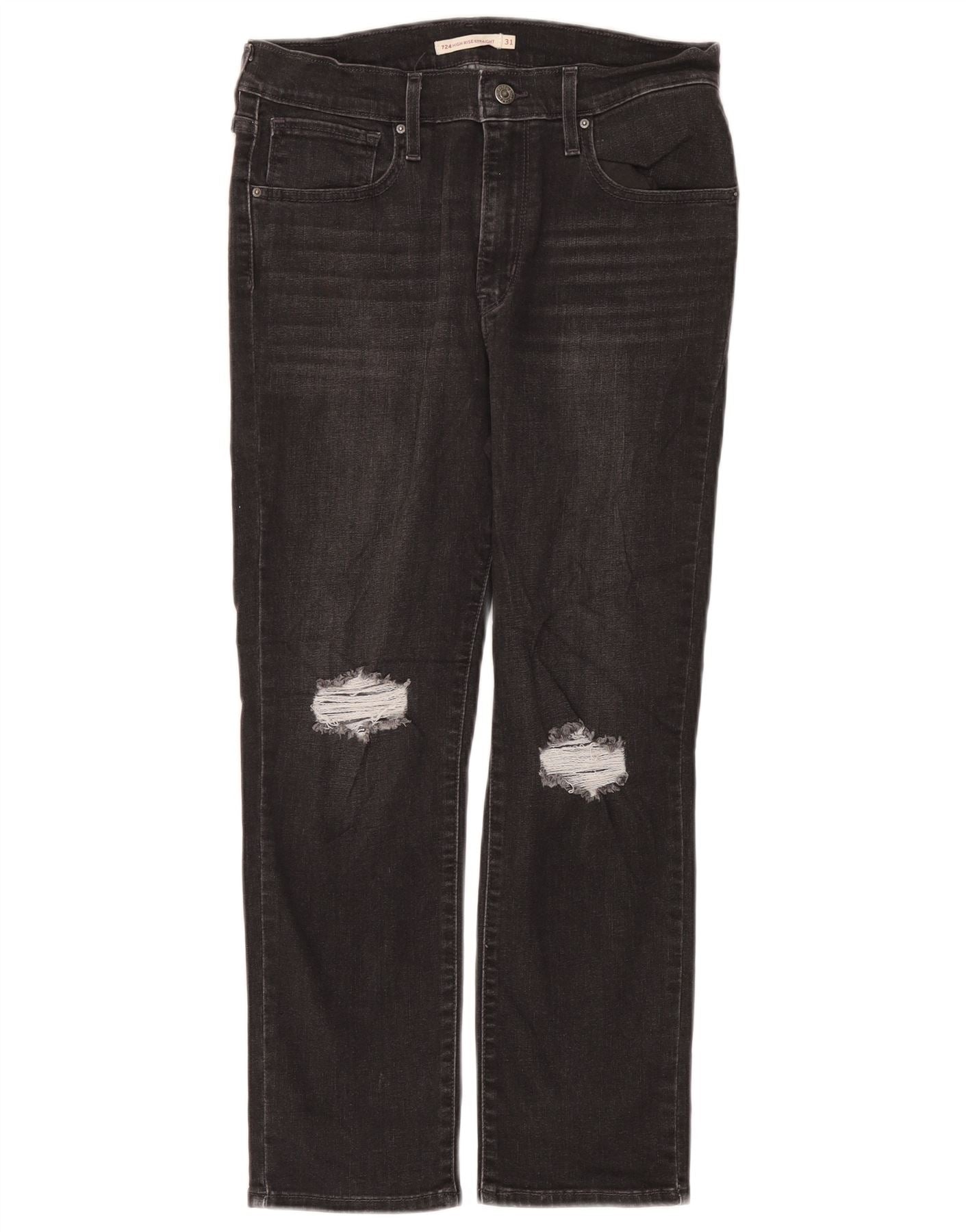 LEVI'S Womens 724 Distressed ψηλό ίσιο τζιν W31 L26 γκρι βαμβακερό