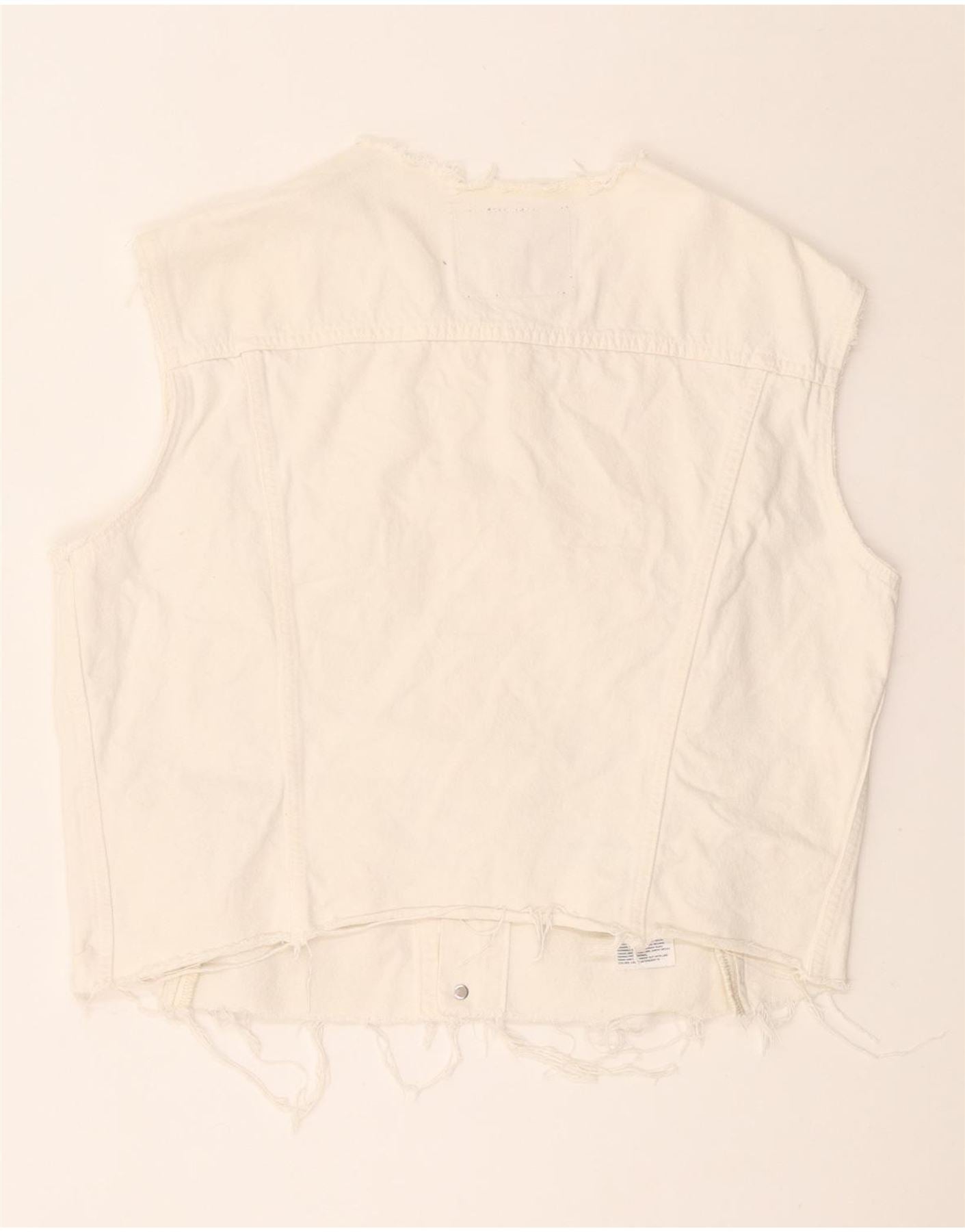 LEVI'S Womens Crop Denim Gilet UK 16 Large White Cotton