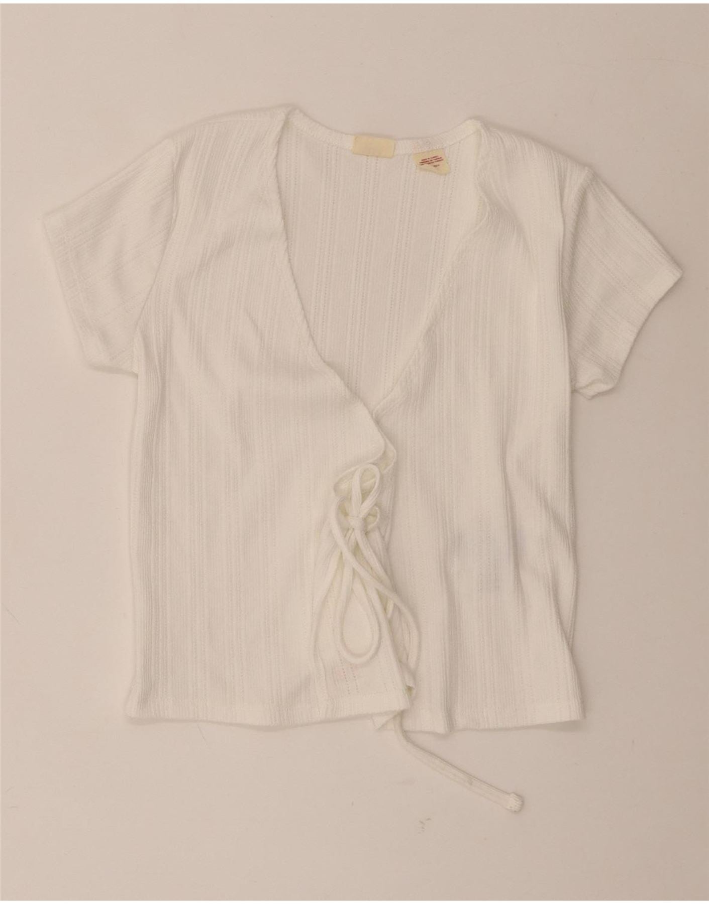 Levi's Womens Crop Wrap Μπλούζα UK 4 XS Λευκό βαμβακερό