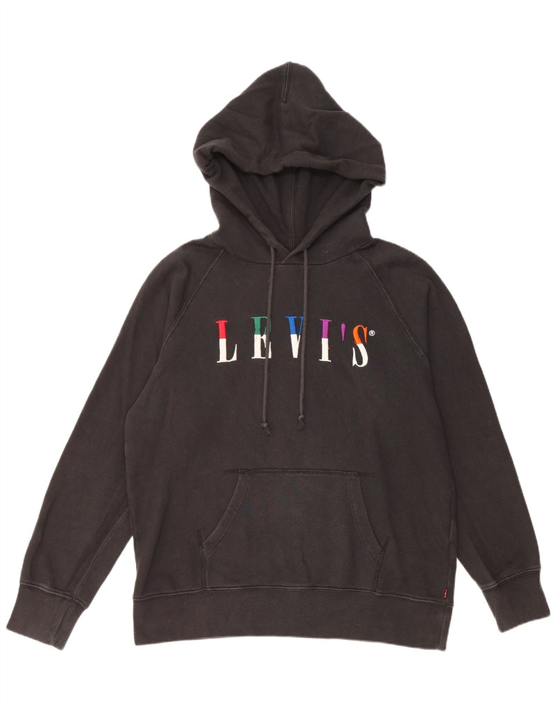 LEVI'S Γυναικείο υπερμεγέθη γραφικό κουκούλα UK 14 Μεσαίο μαύρο βαμβακερό
