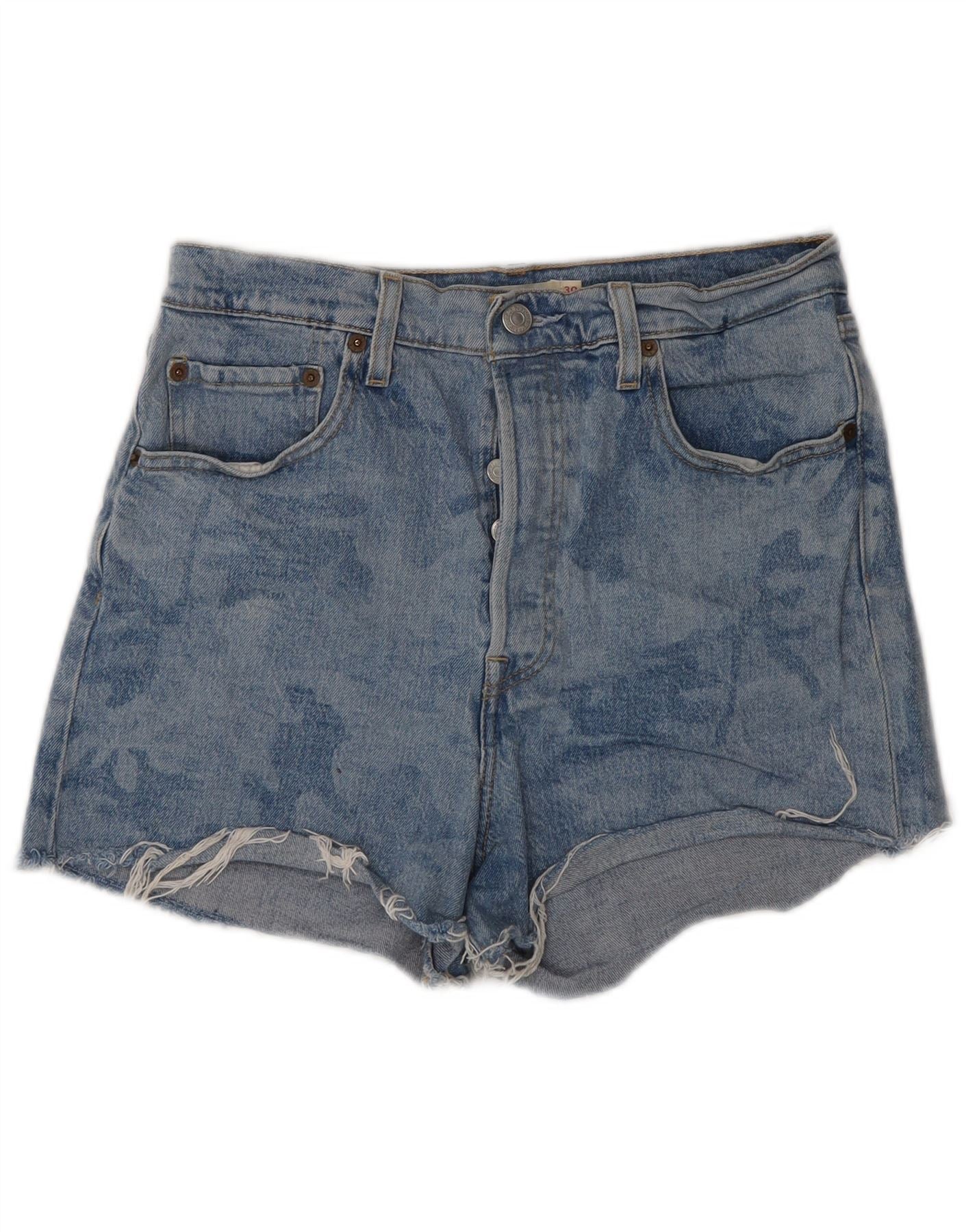 LEVI'S Womens Ribcage High Waist Denim Shorts W30 Medium Blue Camouflage