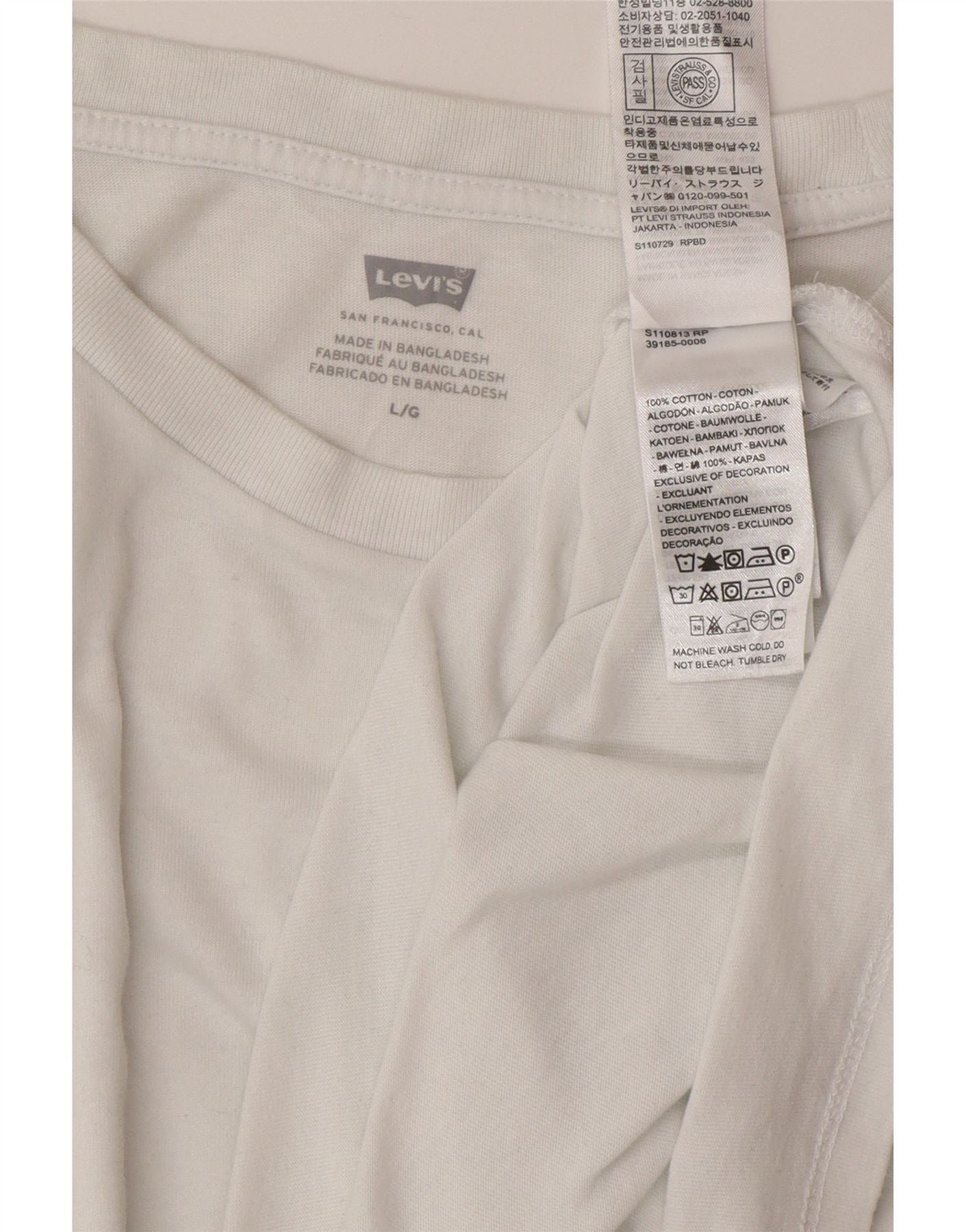 Γυναικείο T-Shirt Levi's Top UK 16 μεγάλο λευκό βαμβακερό