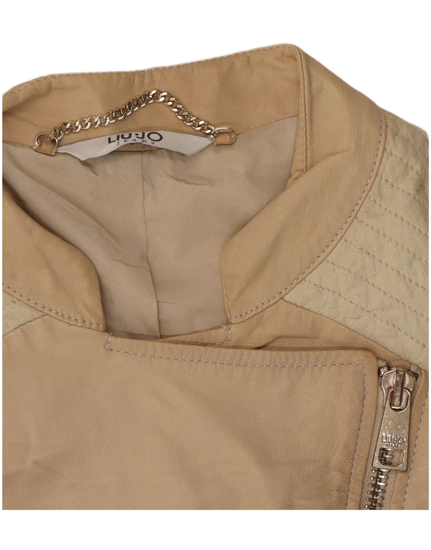 Liu Jo Γυναικείο Crop Biker Jacket IT 42 Medium Beige Colourblock Δέρμα