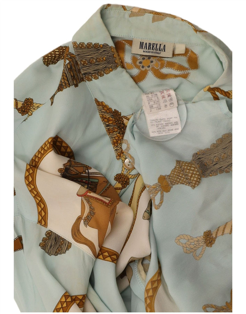 MARELLA Womens Overshirt Abstract Pattern Shirt Blouse UK 12 Medium Blue