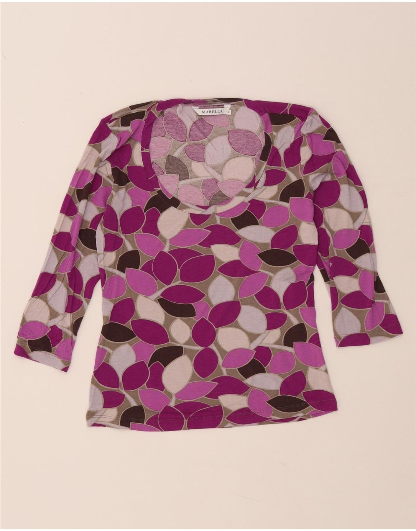MARELLA Womens Top 3/4 Sleeve UK 8 Small Multicoloured Floral Viscose