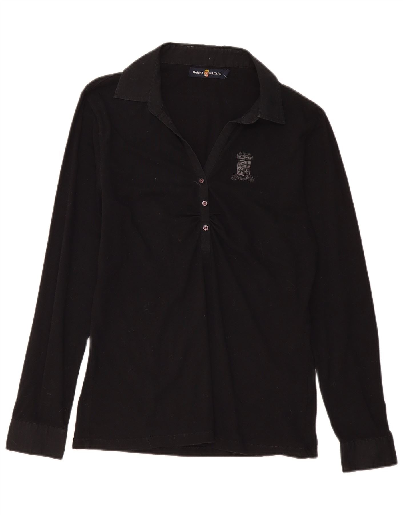 MARINA MILITARE Γυναικείο μακρυμάνικο μπλουζάκι πόλο UK 18 XL μαύρο βαμβακερό