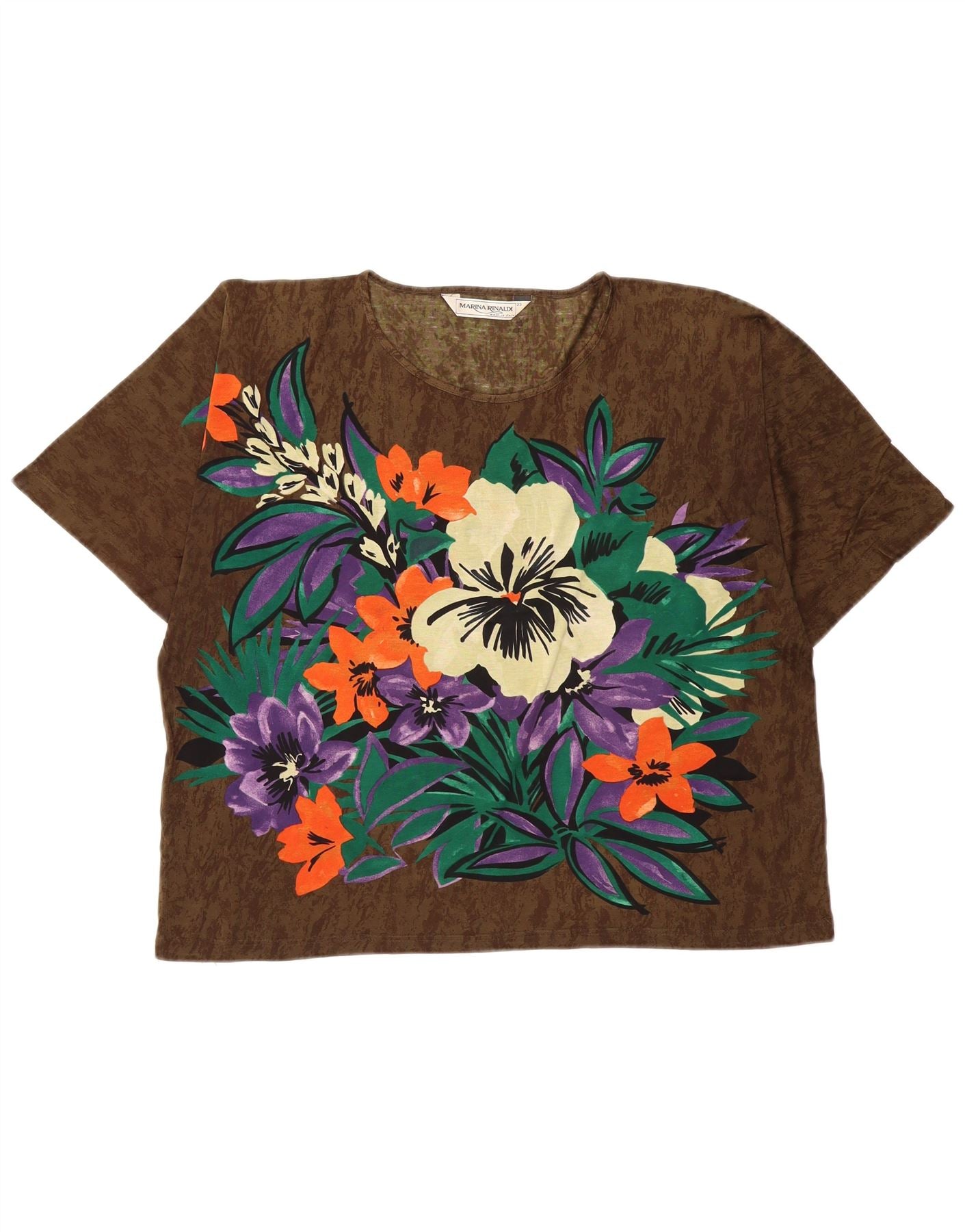 MARINA RINALDI Womens Graphic T-Shirt Top Size 23 Medium Khaki Floral