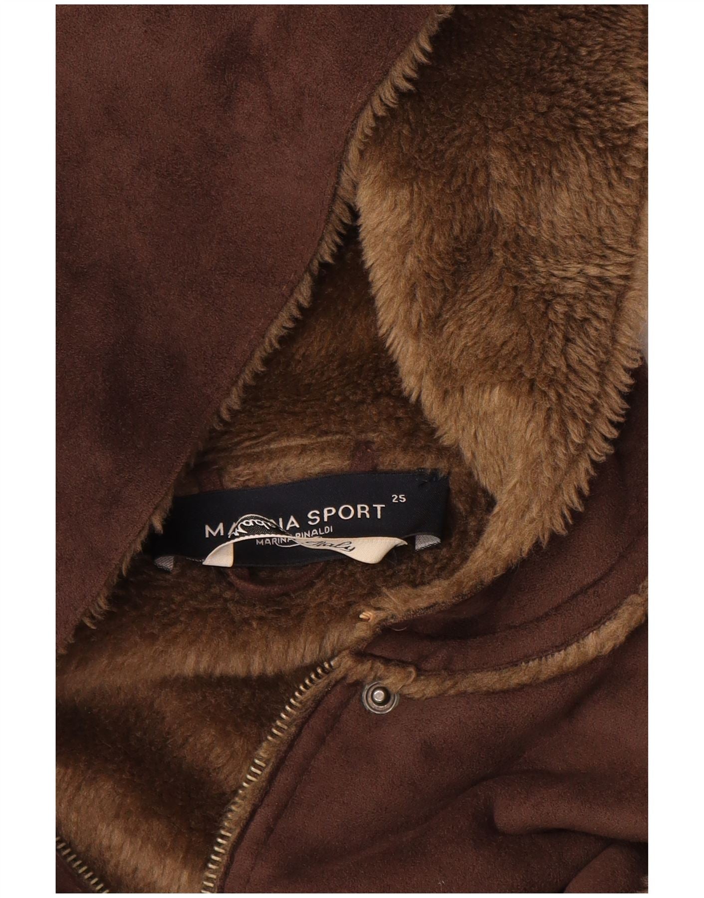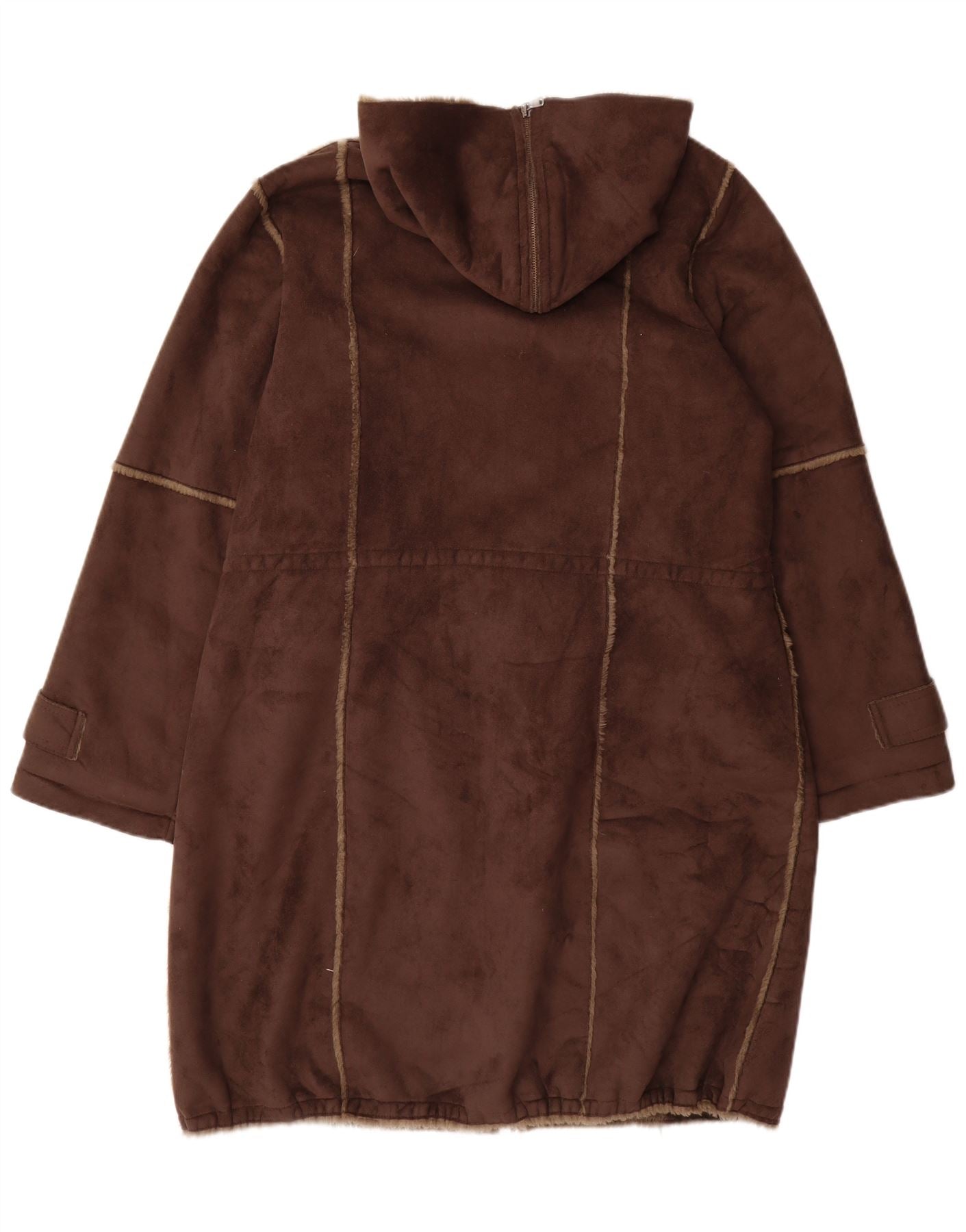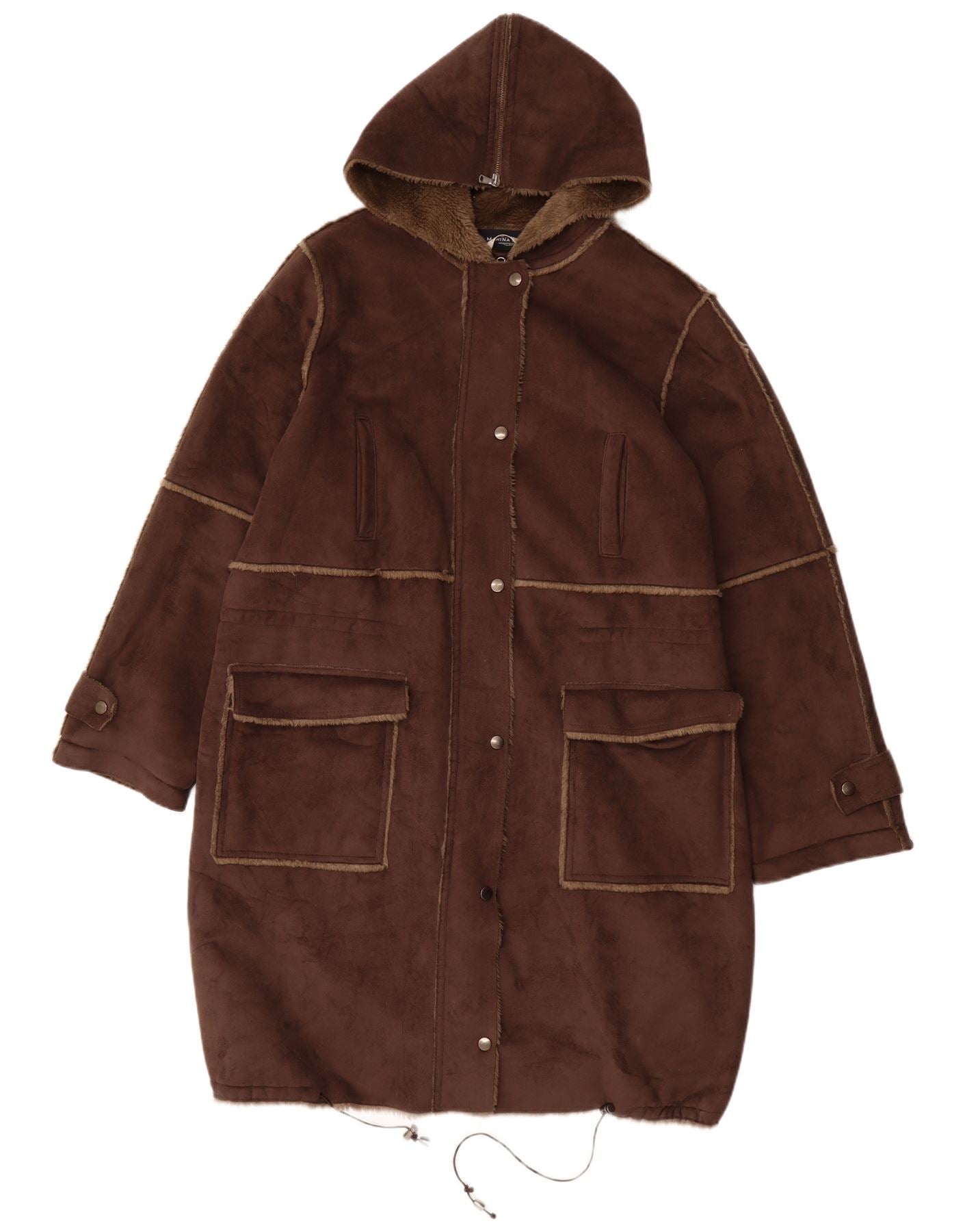 MARINA RINALDI Womens Oversized Hooded Sherpa Overcoat Size 25 Large Brown