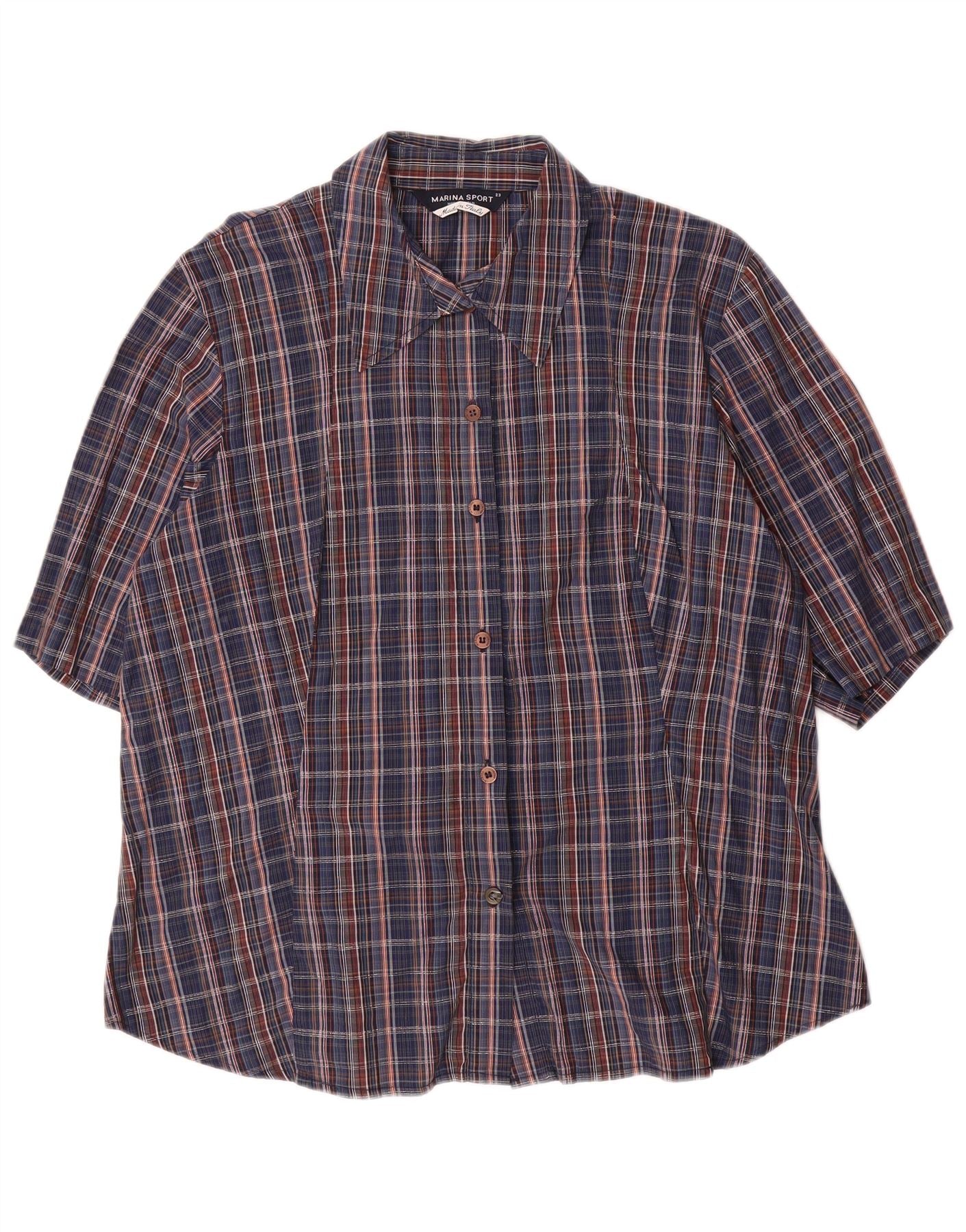 MARINA RINALDI Womens Oversized Shirt Size 23 Medium Navy Blue Check