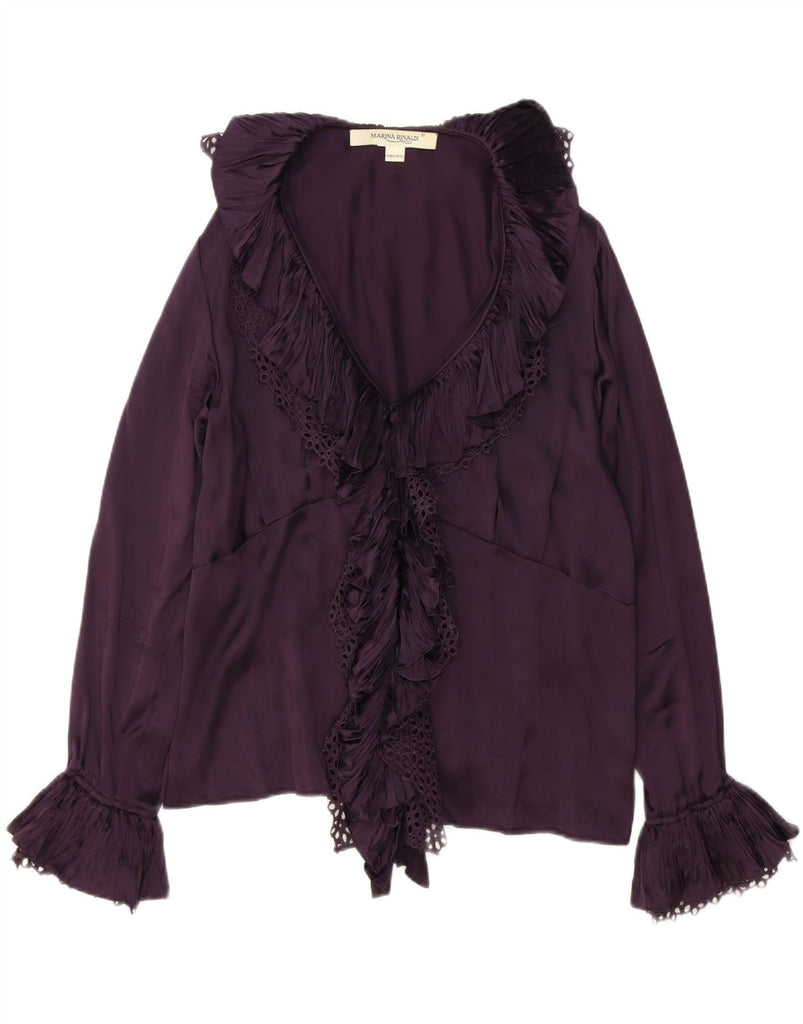 MARINA RINALDI Womens Ruffle Front Blouse Top Size 21 Medium Purple Silk
