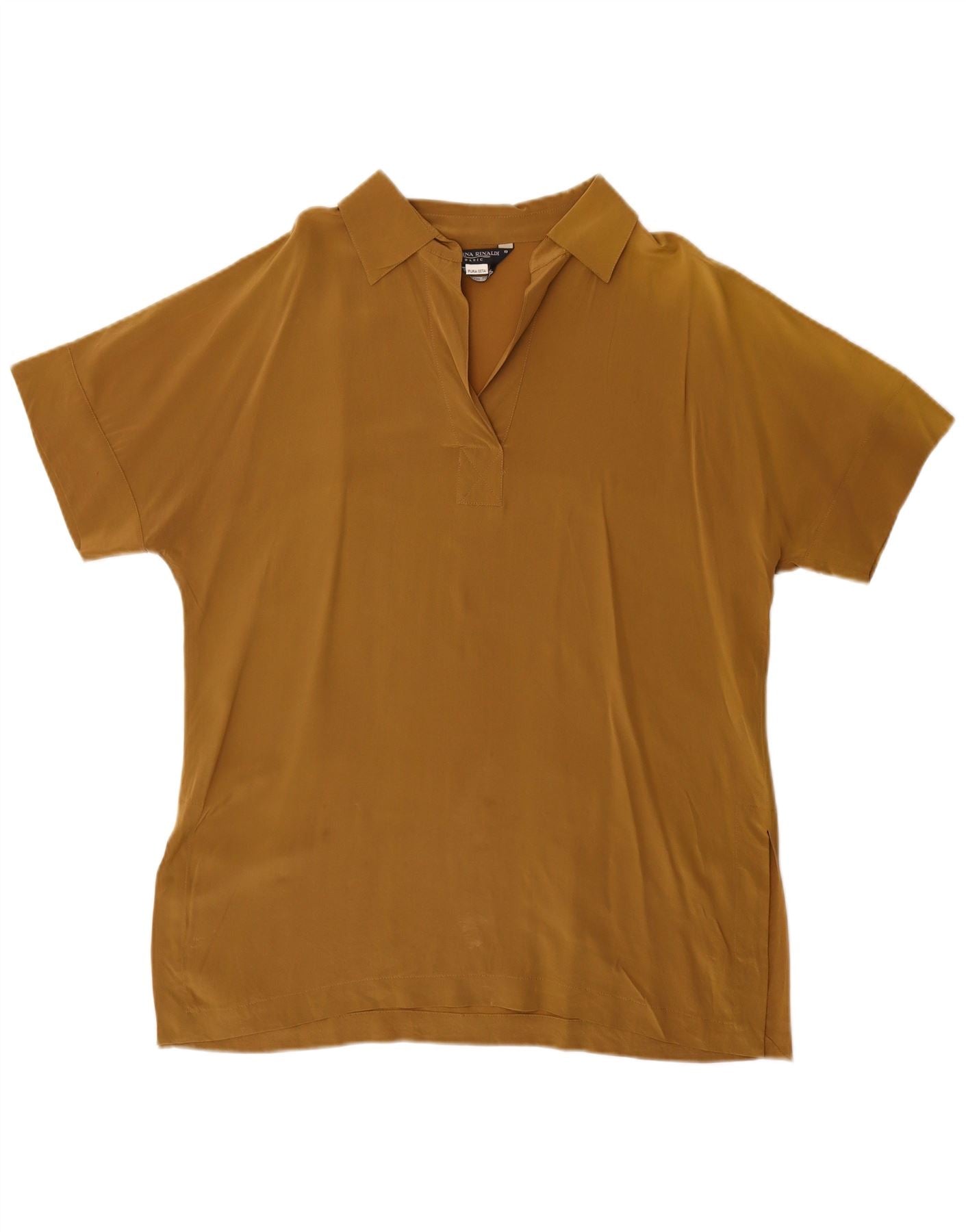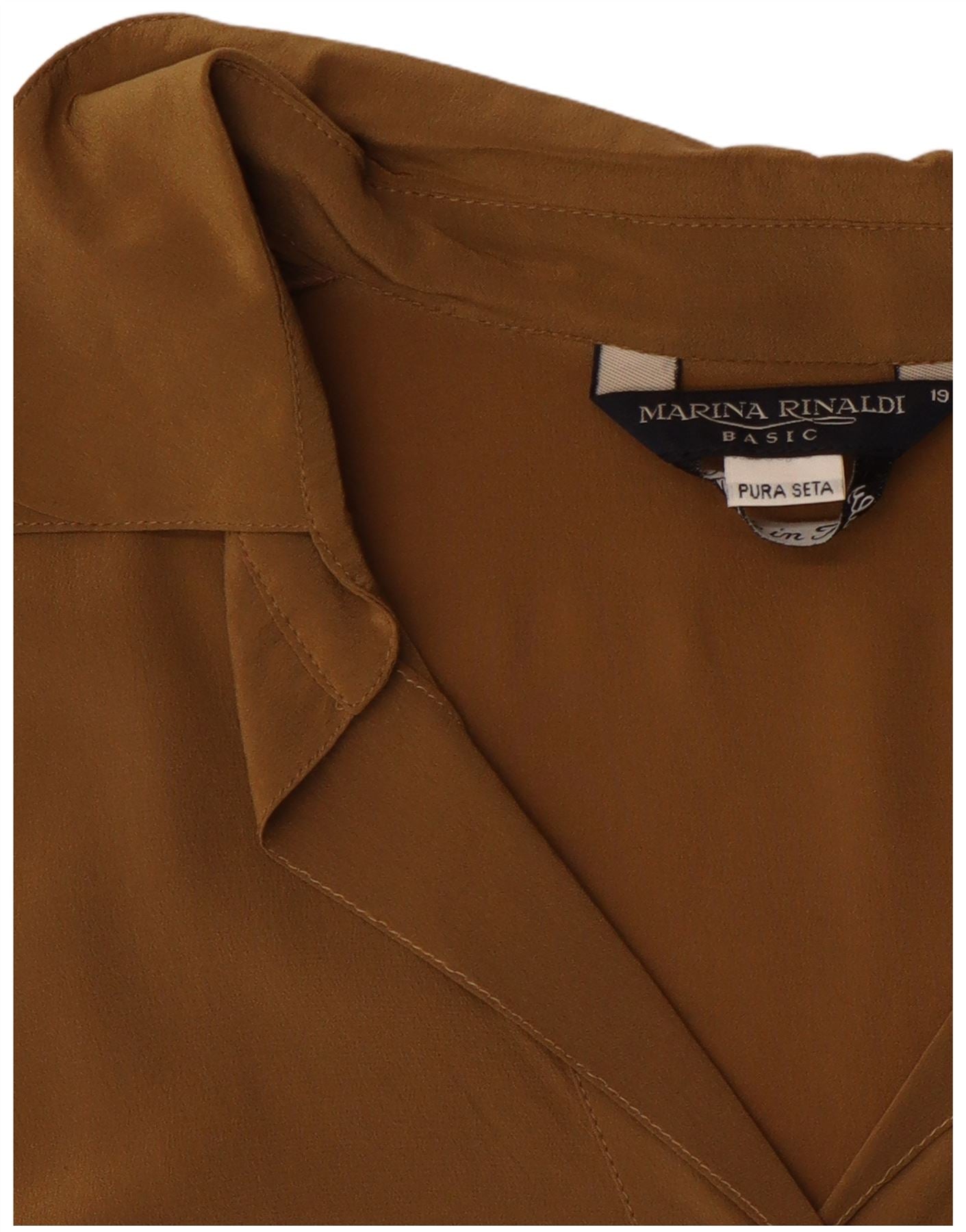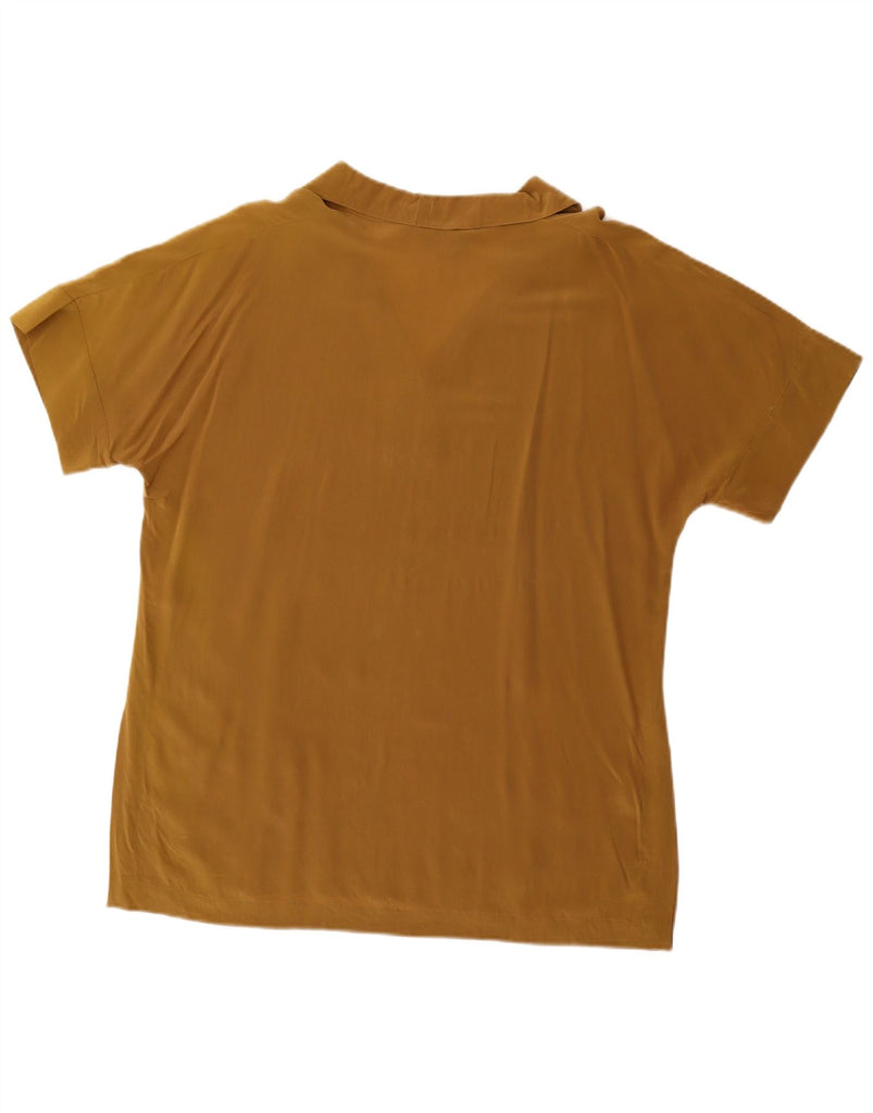 MARINA RINALDI Womens Short Sleeve Pullover Shirt Size 19 Small Brown Silk