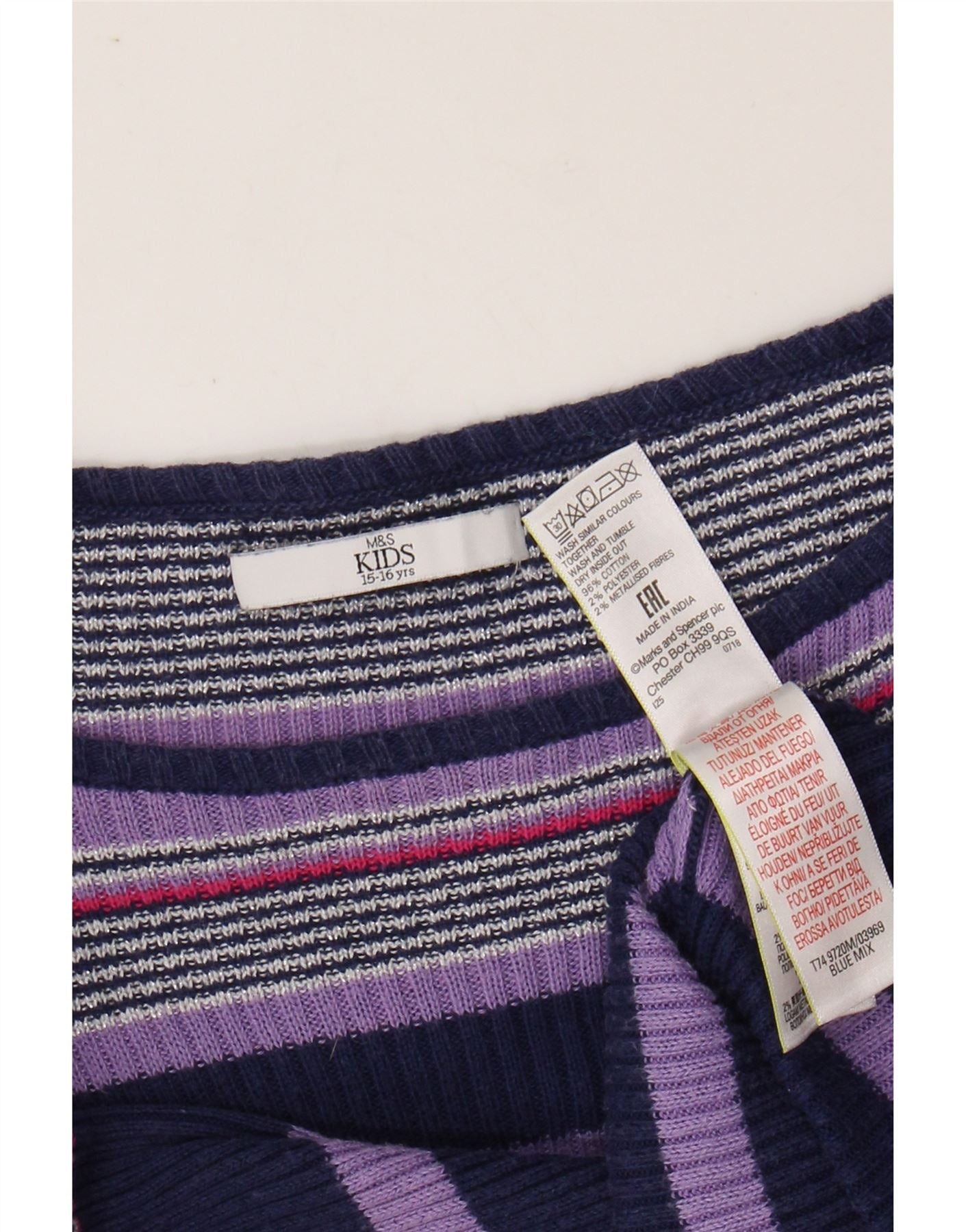 MARKS & SPENCER Girls Jumper Dress 15-16 Years Multicoloured Striped
