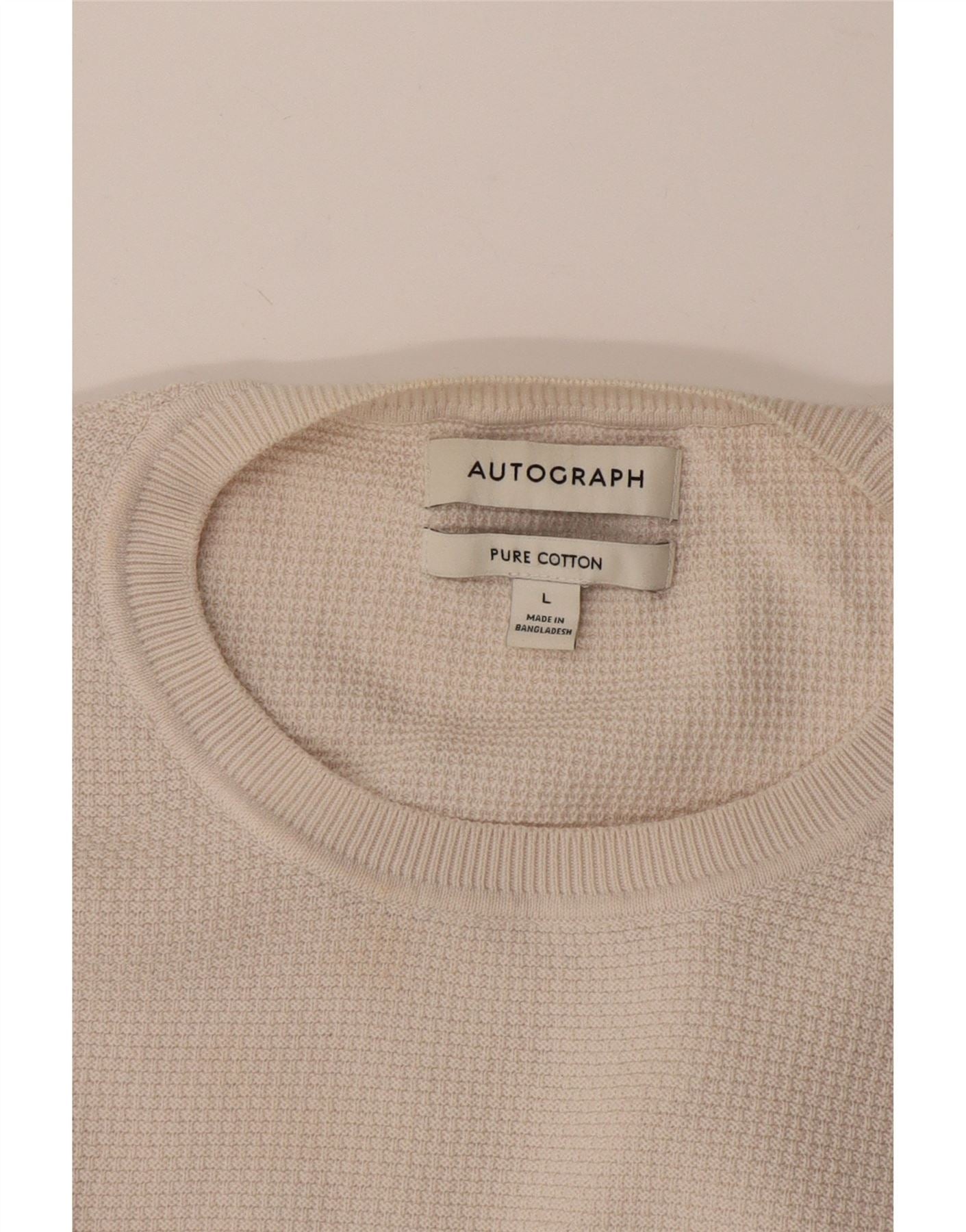 Ανδρικό πουλόβερ Marks & Spencer Autograph Crew Neck Jumper μεγάλο λευκό βαμβακερό