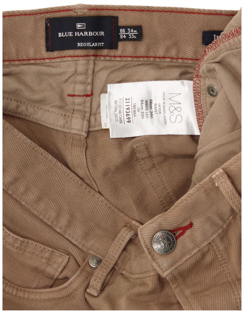 MARKS & SPENCER Mens Blue Harbour Casual Trousers W34 L33 Beige