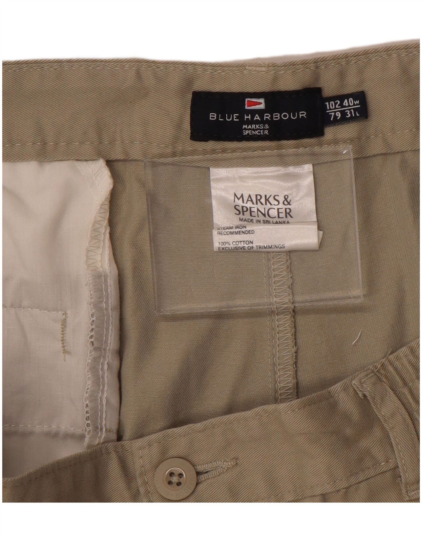 MARKS & SPENCER Ανδρικό παντελόνι Chino με καρφίτσες μπλε Harbour W40 L31 καφέ