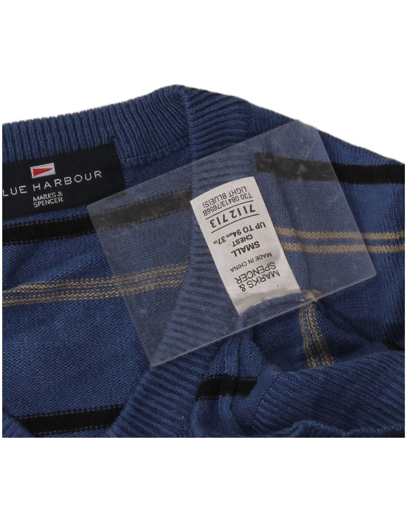 MARKS & SPENCER Mens Blue Harbour V-Neck Jumper Sweater Small Navy Blue